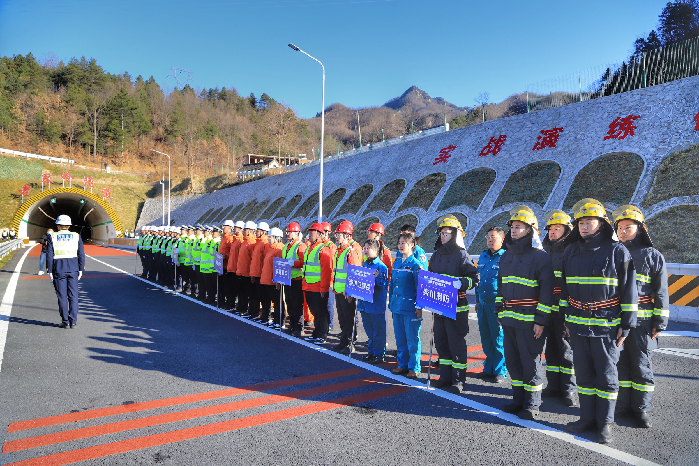 11月26日,由省交通运输厅主办、省交通发展集团洛阳分公司承办的2021年全省高速公路运营隧道交通事故应急演练,在渑淅高速栾双段老界岭隧道举行。