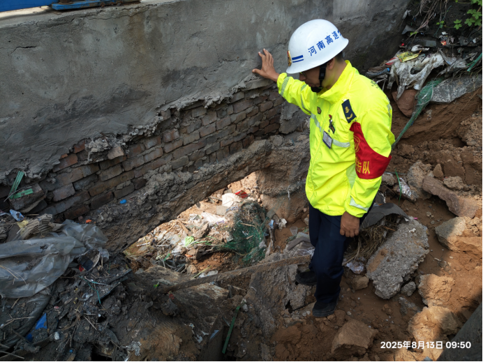 近期,洛阳偃师区遭遇持续强降雨天气,给高速公路防汛安全带来严峻挑战。8月13日上午8时许,偃师区县乡防汛巡查人员在例行检查中,发现辖区内一段高速公路边坡因雨水冲刷出现塌陷迹象,第一时间将情况通报连霍高速洛阳路产外勤中队。