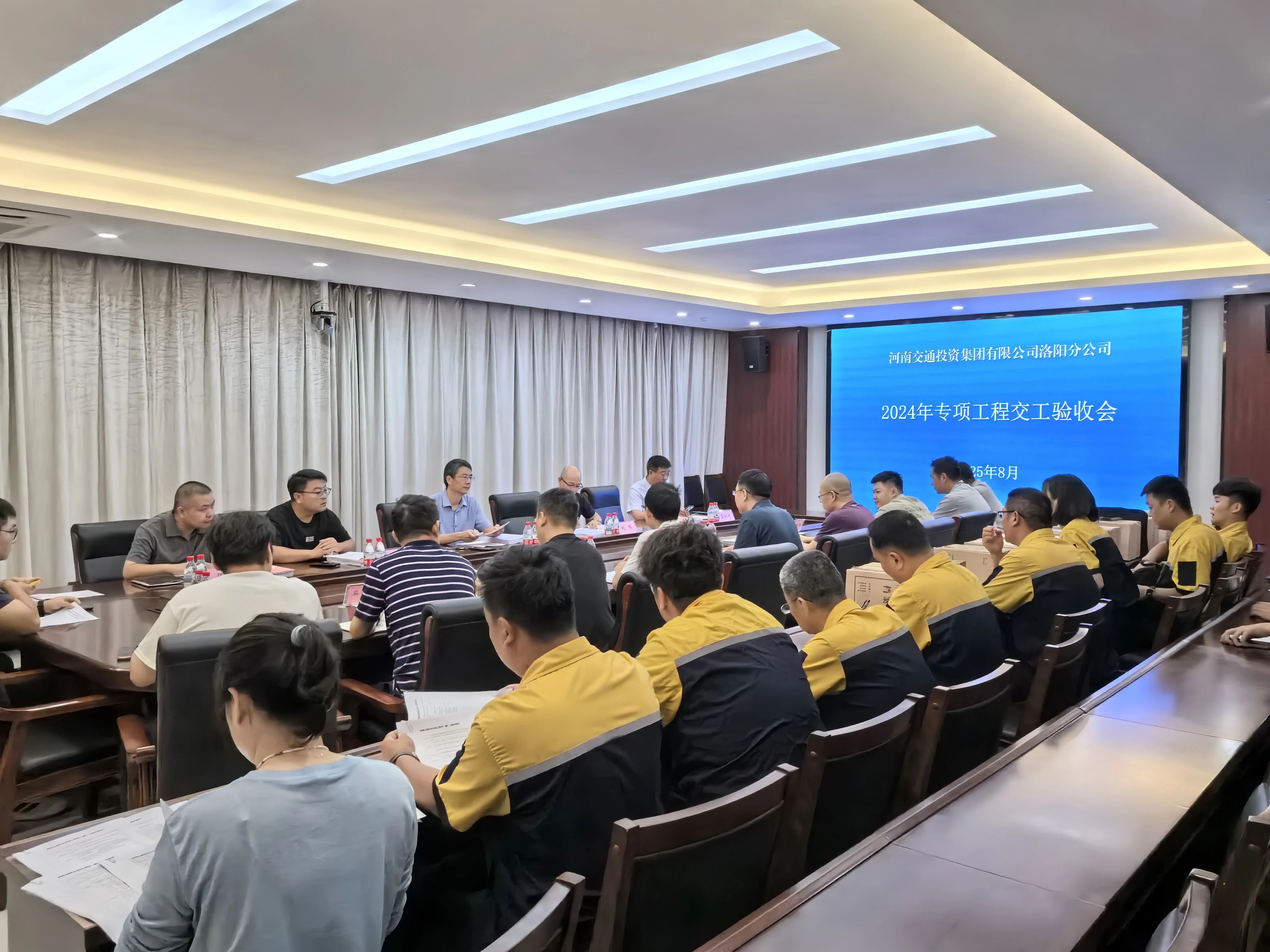 单位:机电信息部 发布时间:2025-09-02近日,洛阳分公司召开2024年机电专项工程交工验收会议,项目建设、设计、施工、监理及检测等单位代表共同参会。