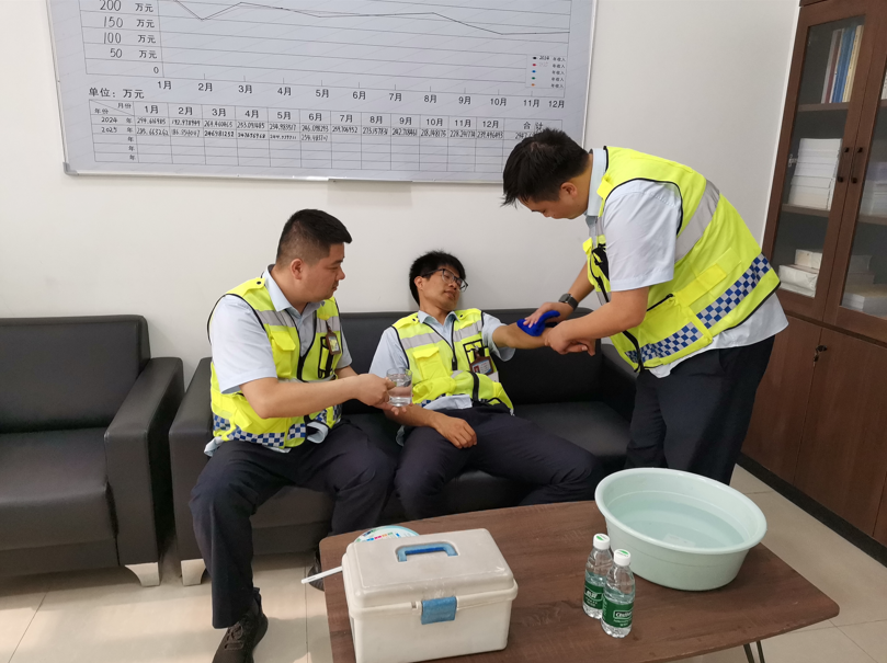洛阳高新区站党支部:聚焦夏季高温作业安全,开展高温防中暑应急演练,模拟绿通验货员户外作业中暑场景,当班人员规范采取搀扶、物理降温、补淡盐水等措施,站领导点评不足并提出改进建议,强化了安全防范意识,为夏季站区安全生产筑牢了坚实防线。