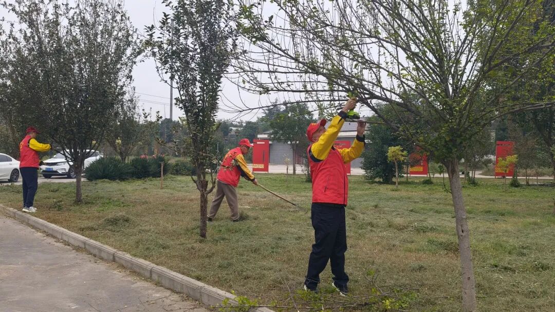 活动现场,身着红马甲的党员志愿者化身“环境美容师”,形成一道亮丽的“红色风景线”。大家分工明确、协作高效:有的操作打草机清理杂草,全力根除环境死角;有的手持园艺剪精细化修剪灌木与花卉,塑造规整美观的造型;其余人员同步开展杂草、枯枝的归拢与清运工作,现场一派忙碌有序的景象。