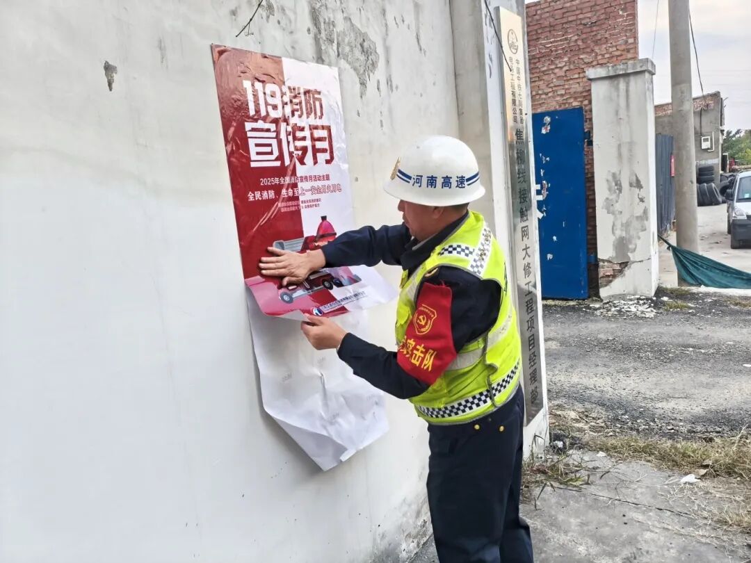 单位:连霍洛阳路产外勤中队党支部 发布时间:2025-11-2411月14日,连霍洛阳路产外勤中队党支部以第34个全国消防日为契机,开展“学习贯彻二十届四中全会精神,筑牢消防安全防线”主题党日活动。