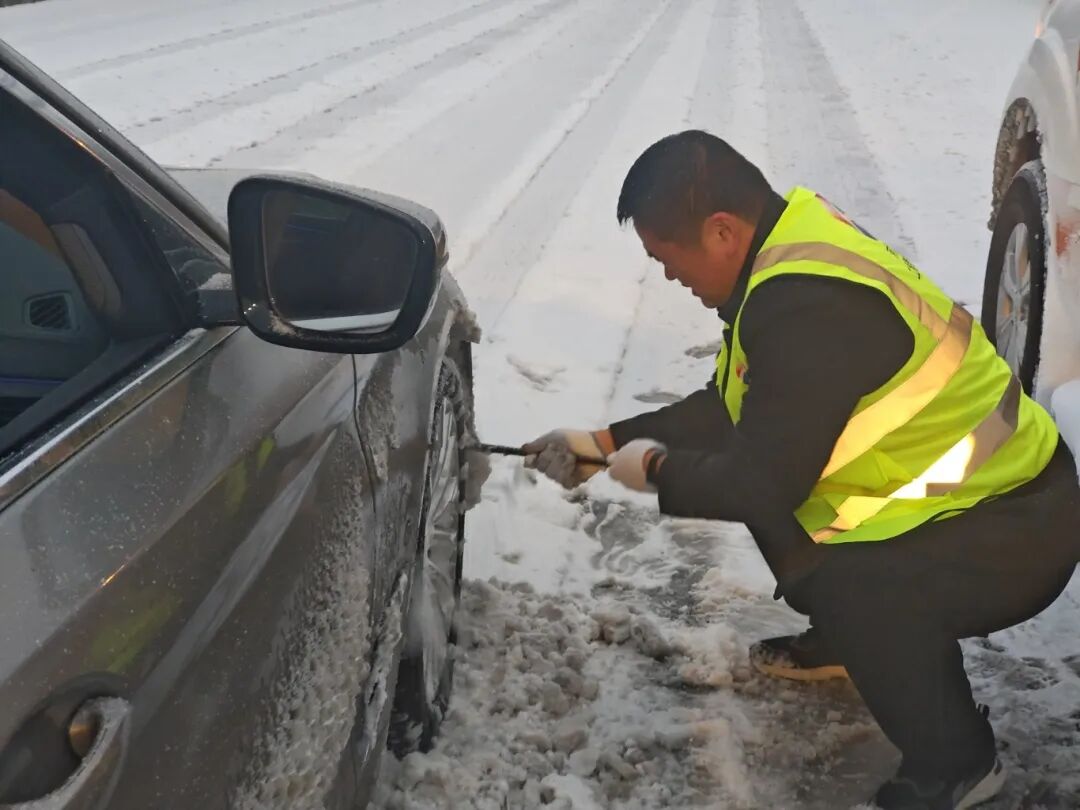 会盟站党支部:暴雪致司乘滞留,党员突击队队员在寒夜中奔波,为滞留司乘送上泡面、火腿肠及热水,耐心传递温暖,在冰封前路中搭建起暖心桥梁,让归途满含温情。