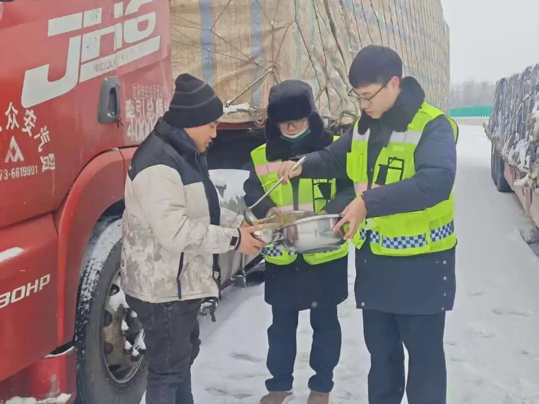 偃师南收费站:全体党员对收费广场、车道、岗亭周边等关键区域开展地毯式除雪;同时为滞留司乘提供热水热饭、路况信息及情绪疏导,践行“我为群众办实事”理念,守护司乘平安出行。
