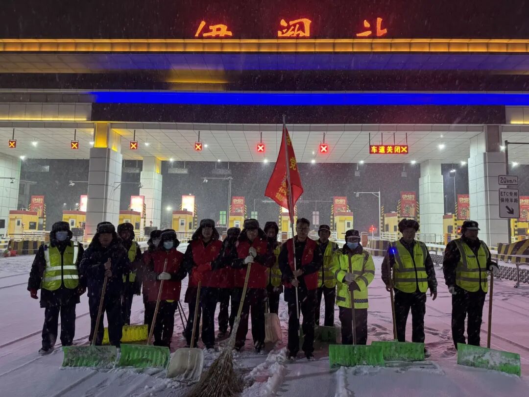 伊河源站党支部:党支部发挥战斗堡垒作用,党员突击队带领全体职工清理收费广场及车道积雪;党员志愿者开展司乘劝返工作,耐心告知结冰风险,引导安全路线或就近避险,守护司乘生命安全。