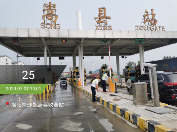 单位:嵩县收费站 发布时间:2020-07-02为切实做好大气污染防治工作,确保收费站区环境干净整洁、无扬尘,嵩县收费站及时传达大气污染防治工作相关文件精神,并持续做好站区的扬尘治理工作,加大日常卫生清洁力度,组织人员对收费广场、车道设备、道路边坡杂物及白色垃圾等进行清理,每天通过雾炮机四次洒水抑尘,喷洒不到的地方用水管冲洒,确保路面湿润整洁,有效地降低了扬尘污染,为过往驾乘人员营造了干净整洁、安全畅通的通行环境。