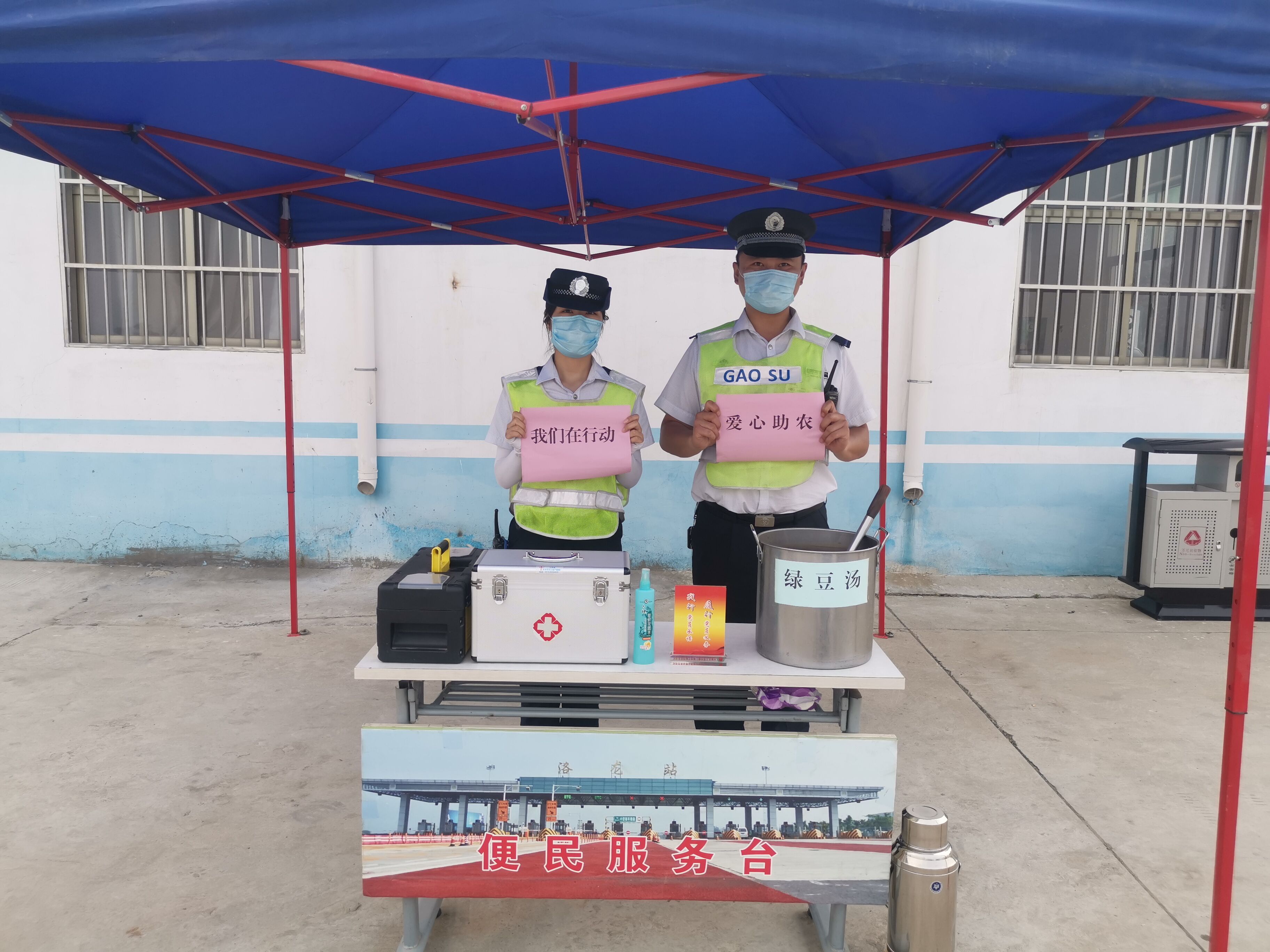 炎炎夏日,附近县区运送农产品的车辆下道数量大幅增加。近日,洛龙收费站根据夏季气候的特点,拓展服务举措,开展“爱心助农”活动,为过往司乘免费提供冰镇绿豆汤、防暑驱蚊药品、简易修车工具等服务,最大限度满足了司乘的需求,用暖心行动为司乘人员营造了温馨、舒适的通行环境。