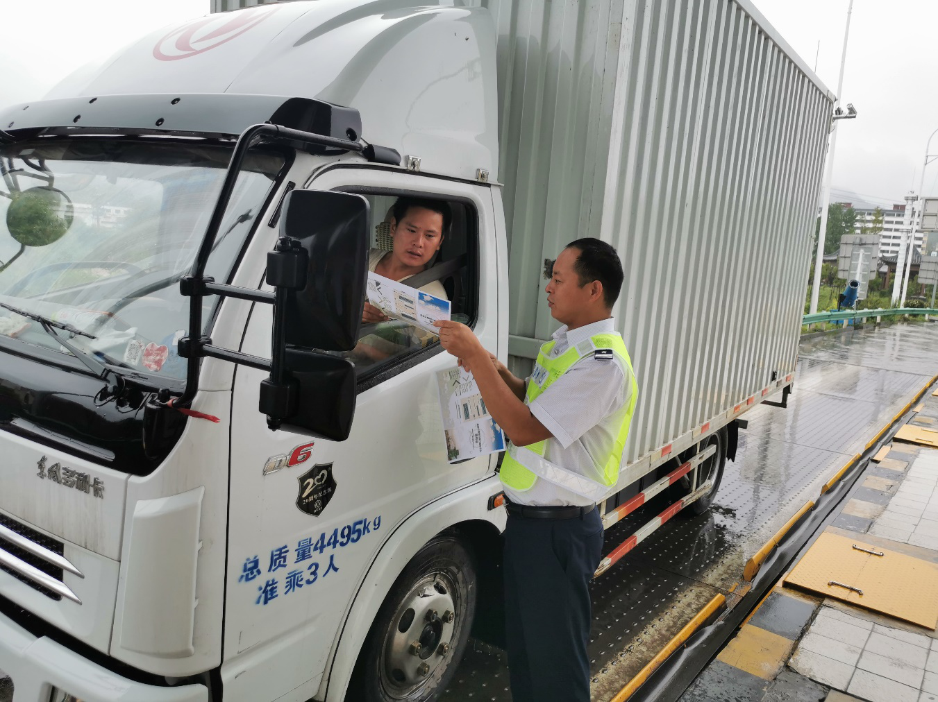 单位:旧县收费站 发布时间:2020-07-22为积极响应国家政策,提升鲜活农产品车辆和运输联合收割机等车辆通行效率,减少收费站拥堵,实现不停车快捷收费,7月22日,旧县收费站,组织开展了预约通行服务的宣传推广活动,为货运司机朋友耐心的讲解了预约通行平台的优势及相关政策,就预约通行流程四部曲、退费流程进行手把手指导。