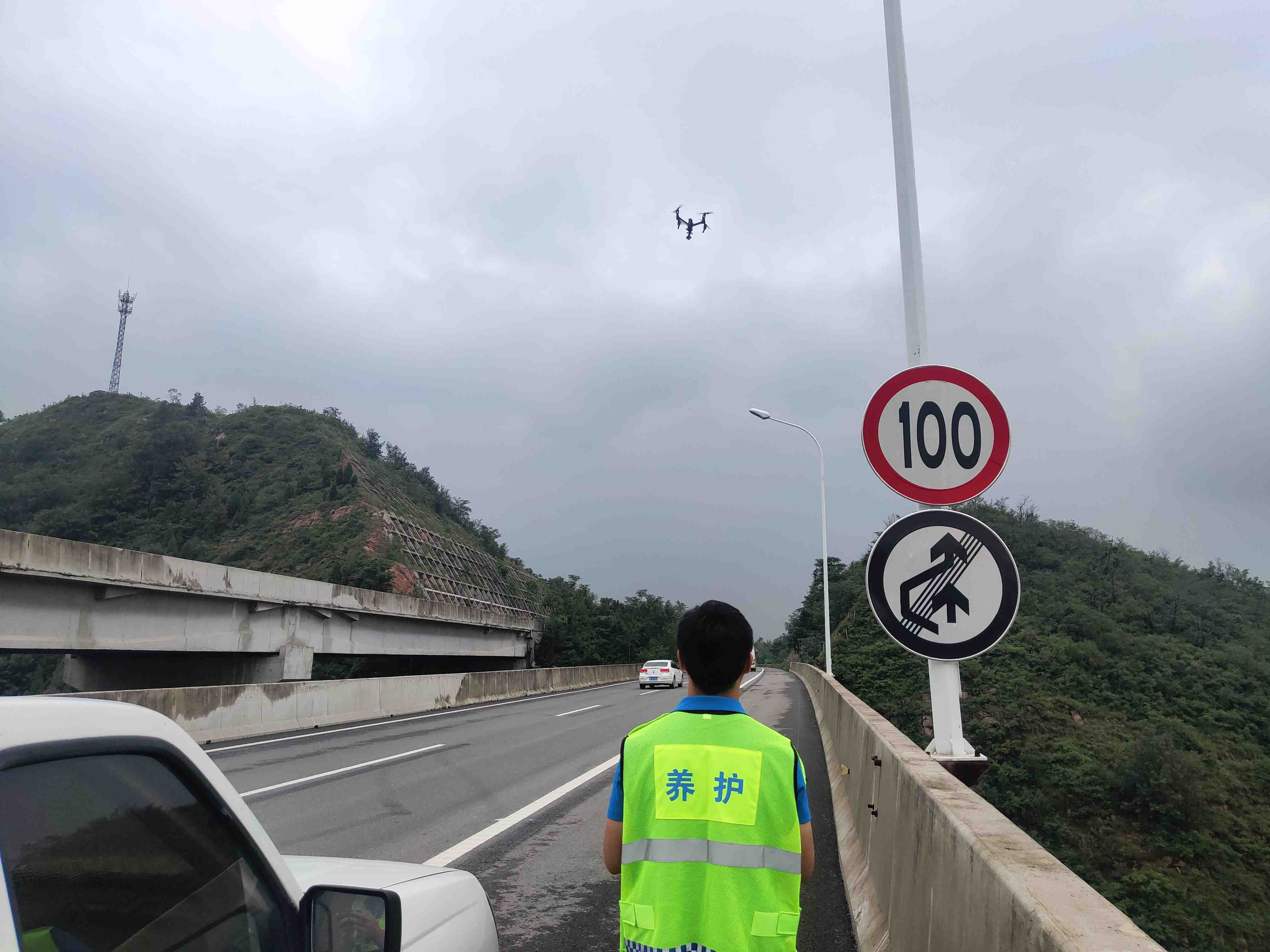 单位:养护工程科 发布时间:2020-08-25管理处所辖道路地处豫西山区,桥隧占比较高,沿线多高边坡,桥梁跨径较大,极不利于养护人员现场巡查工作的开展。为了克服客观条件的不便,养护部门与时俱进,及时利用电子设备进行贴近巡查,在不方便人员攀爬的区域利用无人机实现结构物情况的掌握,除了查看隧道洞口洞顶,还可以查看边坡与桥梁病害,提高了养护工作效率和数据准确性。