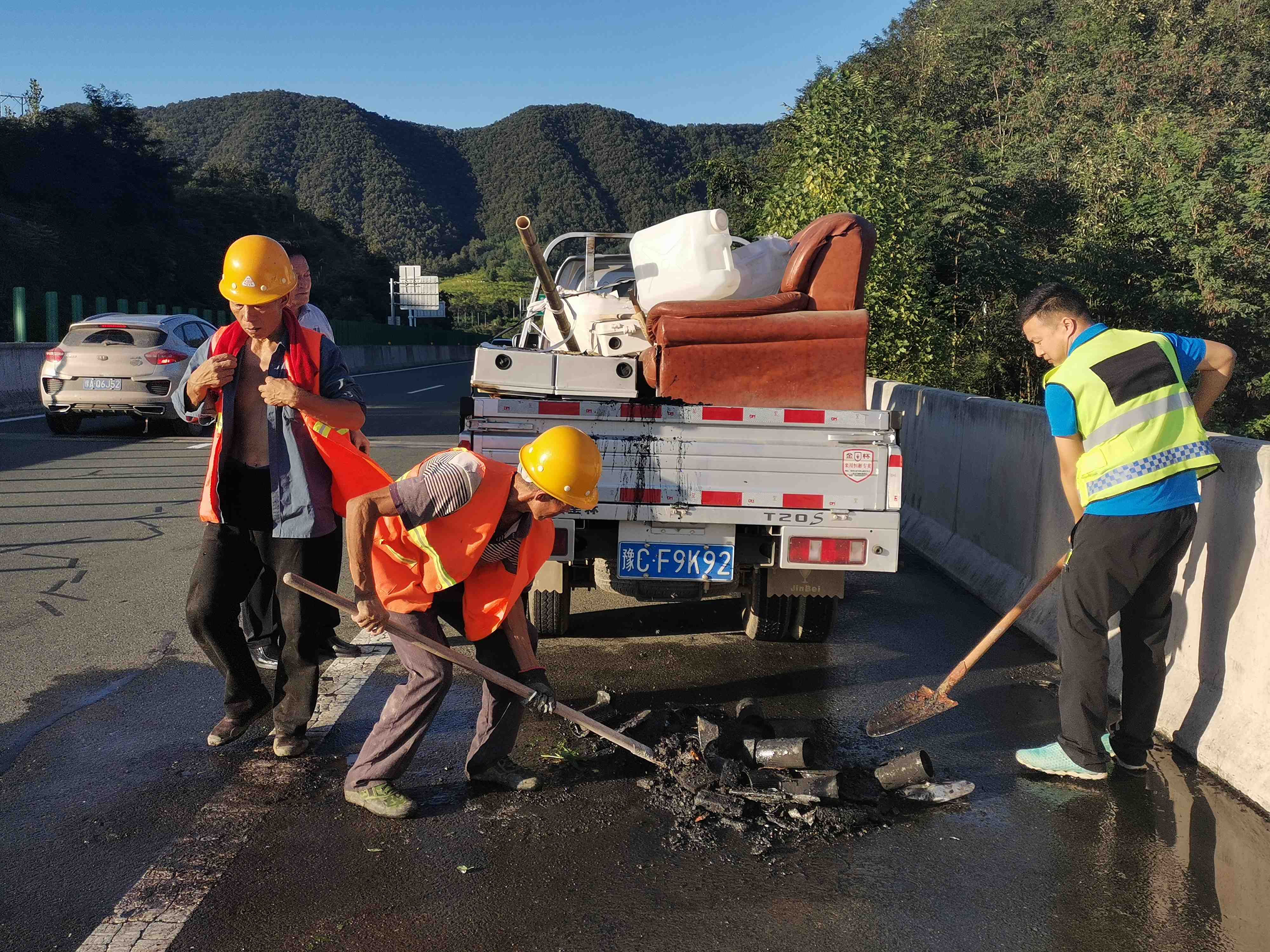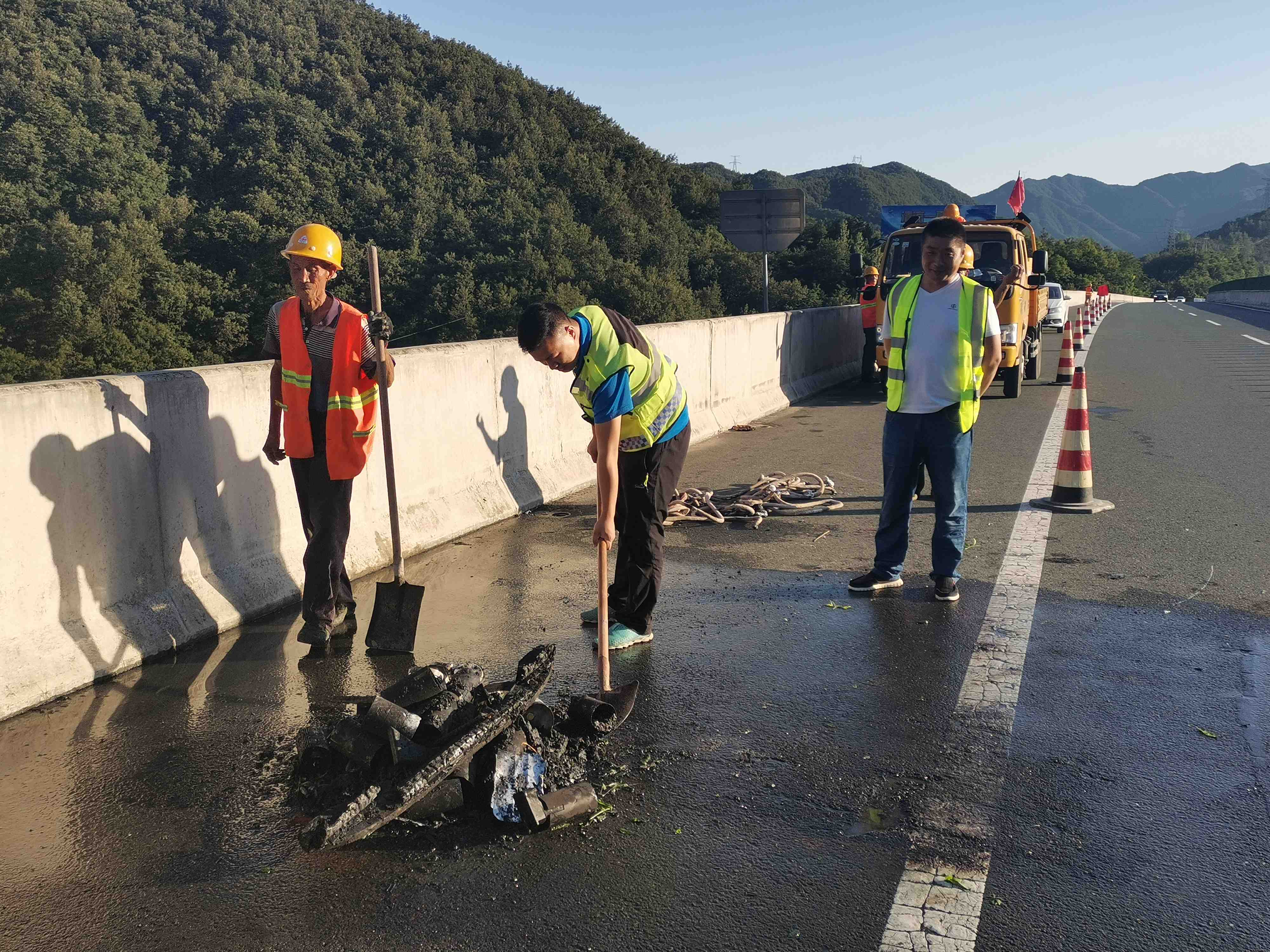 8月25日下午九龙山养护管理所在日常巡查中发现一辆小型货车车身有冒烟现象,立即追上车辆并示意司机停车。随后,养护人员立即设置临时安全区,协调附近施工的养护洒水车辆前来灭火。由于隐患发现及时,火势很快得到了控制,避免了更大范围火灾的发生,避免了重大财产损失和人员伤亡。