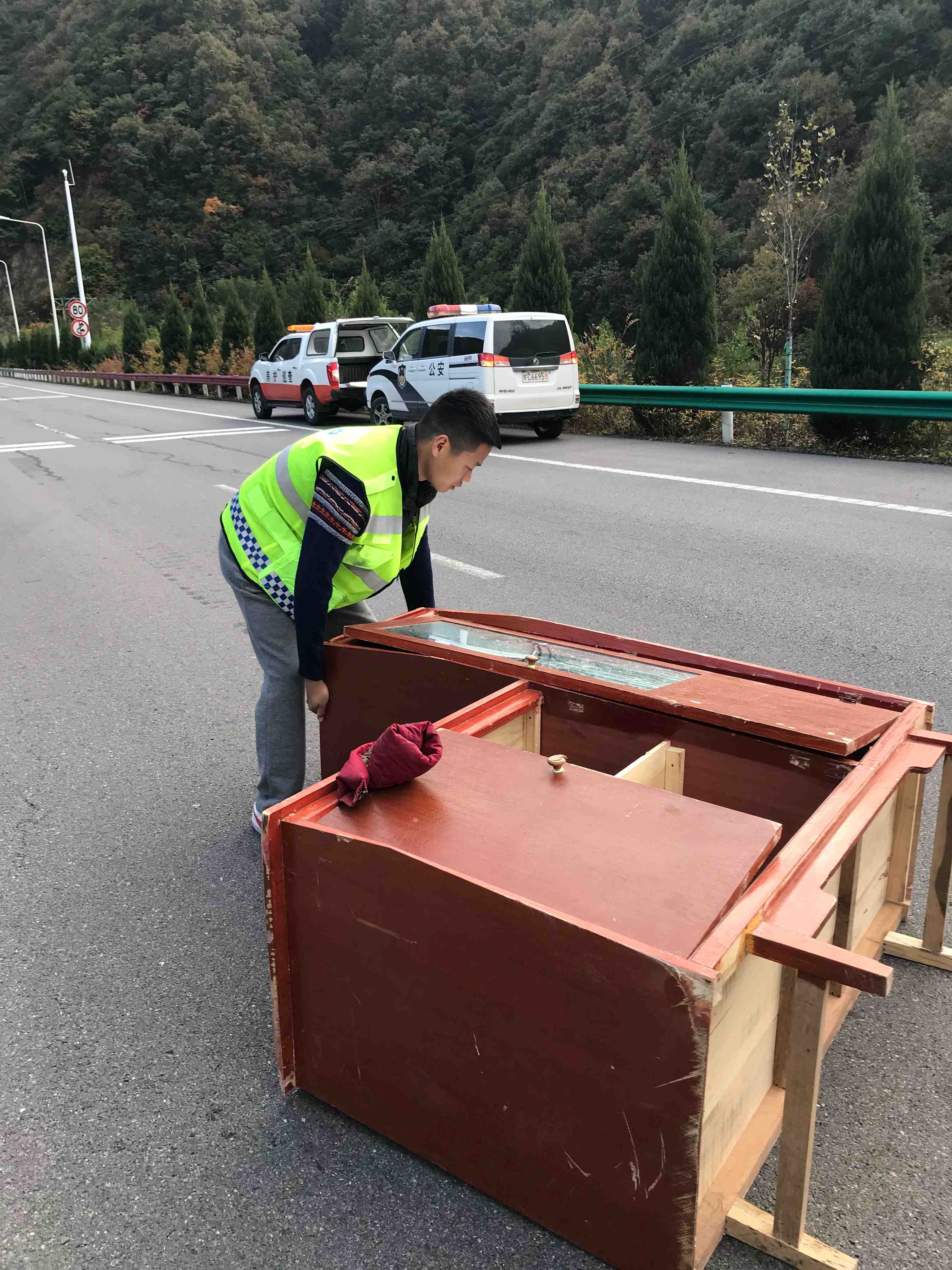 九龙山养护所及时清理路面散落“衣柜”消除行车安全隐患