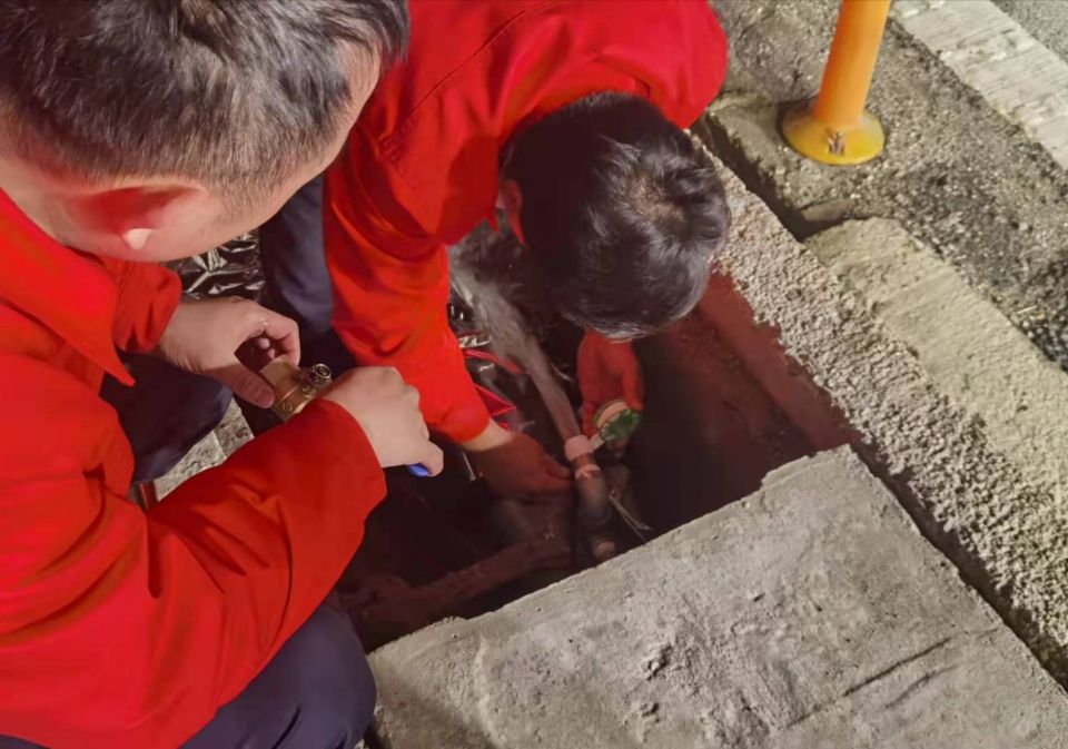 12月8日,嵩县机电运维大队日常巡检发现,玉皇庙隧道下行入口处消防管道压力表和阀门损坏,造成消防管道大量漏水,积水继续蔓延将导致路面结冰,存在安全隐患。大队迅速制定抢修方案,关闭主阀,排空消防管道内存水,更换管道新阀门,经过1个小时的紧张抢修,隧道水消防系统恢复正常运行。