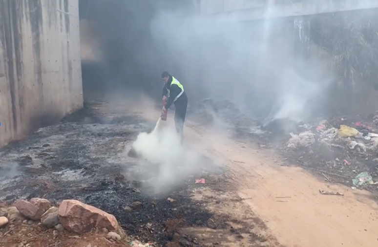 巡查人员立即停车查看火情,将情况上报大队,并利用随车装备组织灭火。经调查,此次火情为沿线村民在涵洞口点燃杂草引发,巡查人员随后联系了当地路庙村村干部,要求村委加强村民冬季消防安全宣传教育,严防高速公路边坡火灾,避免对高速公路安全通行造成大的影响。