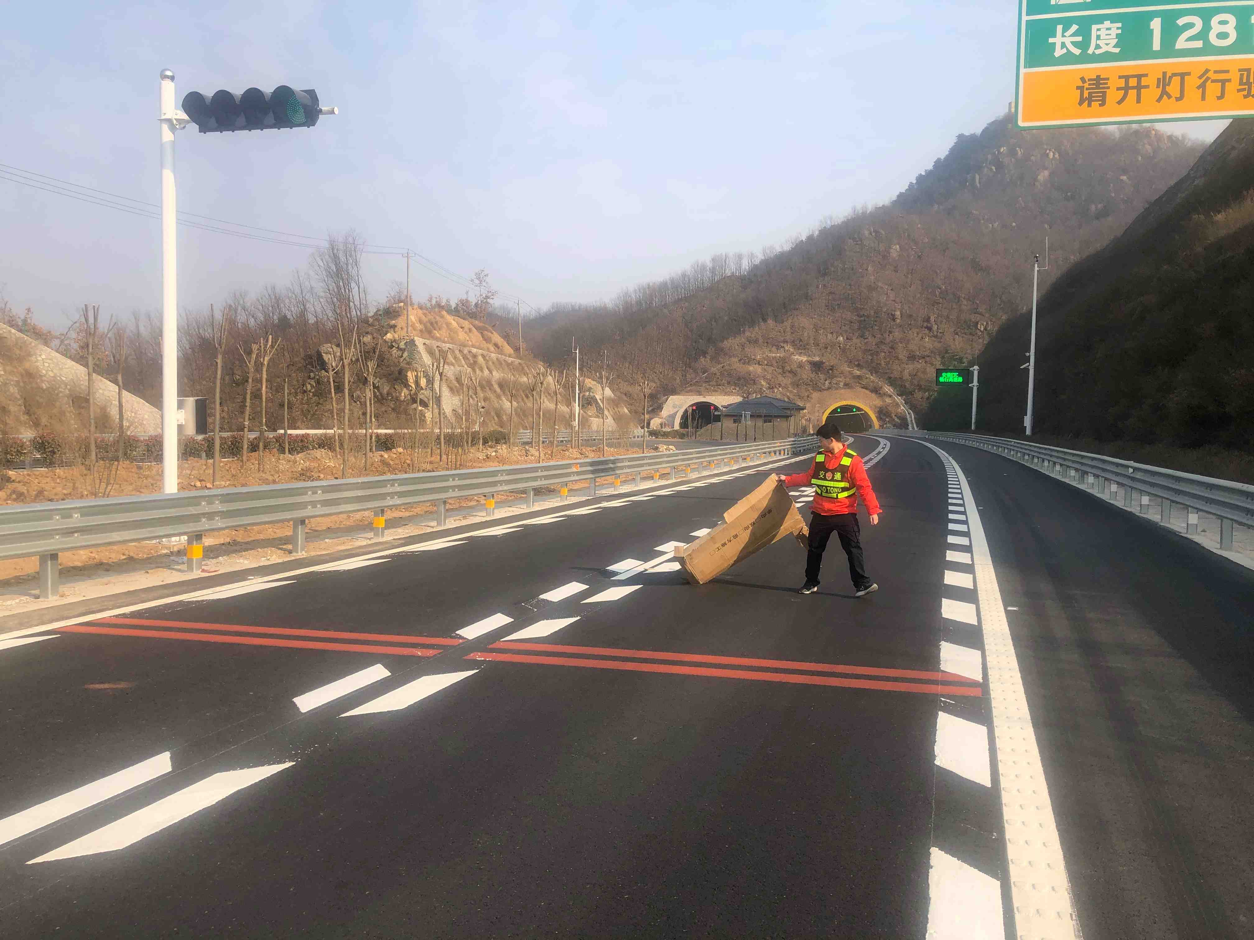 1月22日上午,尧山西机电运维大队巡查途中,发现尧山隧道下行隧道入口K194处,行车道中间有较大障碍物,当班运维人员立即行动、安全处置,迅速清除障碍物,确保道路行车安全。