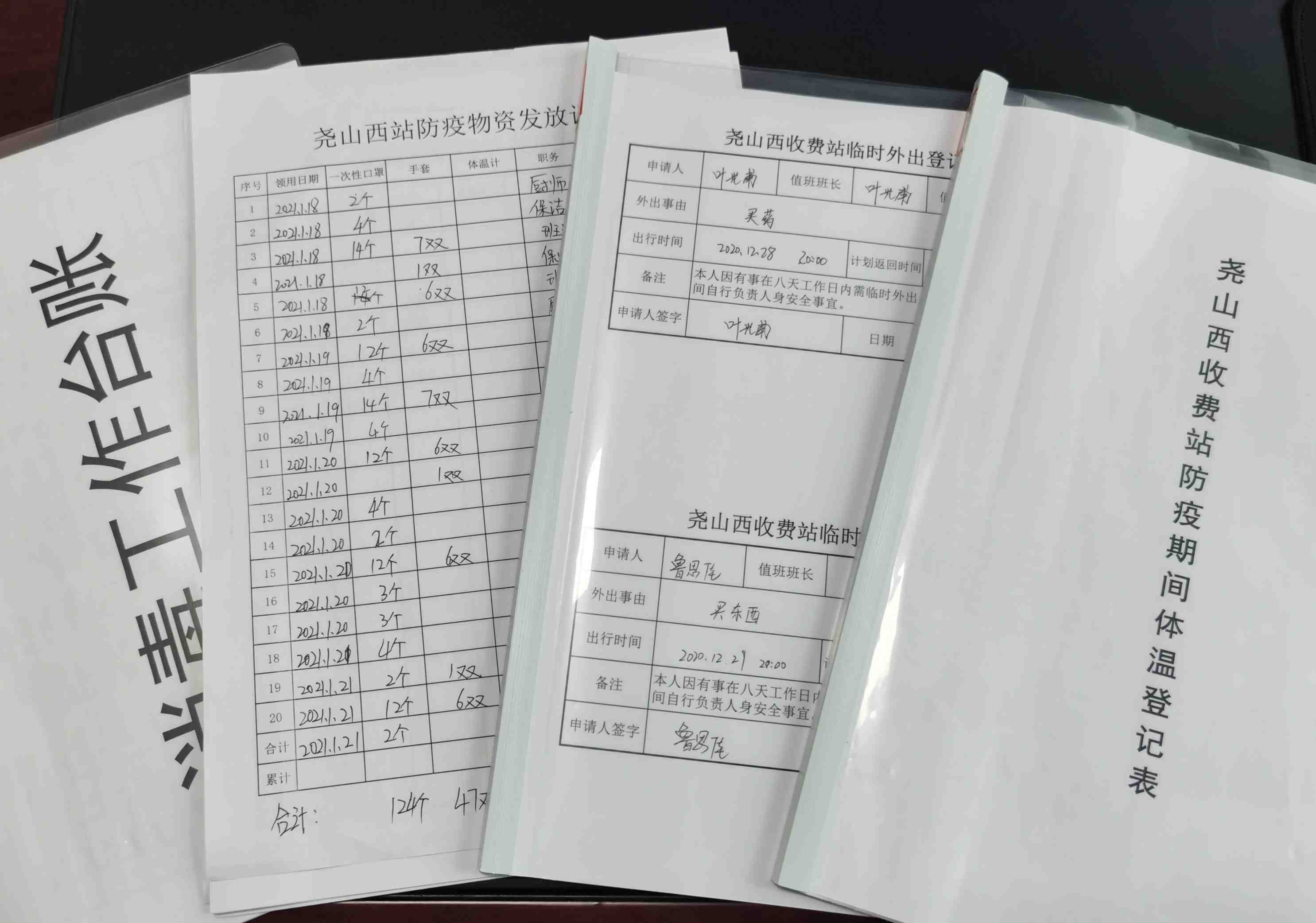 尧山西收费站严格落实疫情防控措施,每天四次对办公楼、生活区、餐厅、院区及车道进行消毒,严格落实人员防护和健康管理,严格执行“日报告、零报告”制度。及时分析排查防控漏洞,确保防范措施严密有效。在这场看不见硝烟的战争中,尧山西收费站全体职工团结一致、众志成城,坚决打赢疫情防控阻击战。