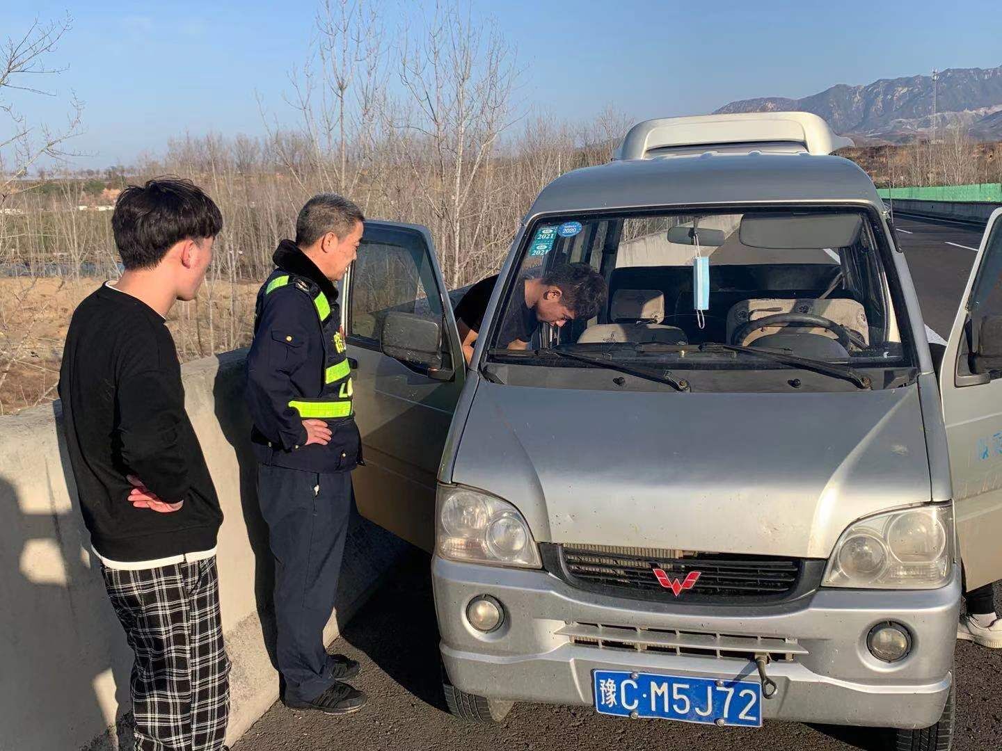 2021年2月14日,大年初三,洛宁路产管理大队巡查至S92K75+900时,发现一辆面包车停靠在紧急停车带,司机十分焦急,巡逻人员上前询问情况,得知车辆发生不明原因故障无法启动。巡查人员立即展开救援,帮助司机排查故障,经过不懈努力,最终帮助司机重新连接了磨断的油门线,车辆恢复正常。
