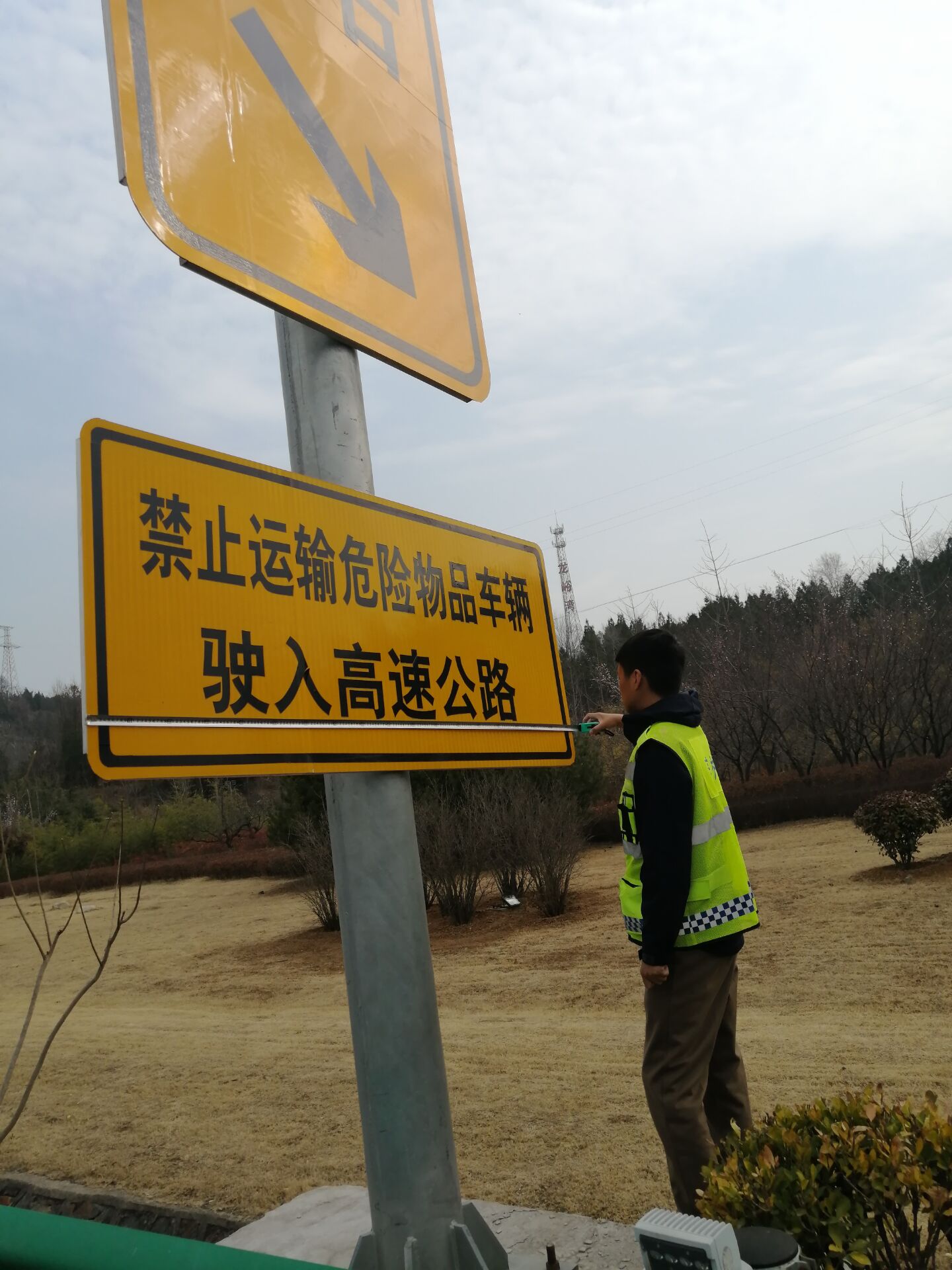 2021年2月23日,九龙山养护管理所对管辖收费站入口危险品运输车辆禁行标志标牌进行实地勘察,详细记录收费站入口处有关危化品车辆的标志标牌情况,针对改造方案与设计院专家进行沟通,确保危险品车辆驾驶员能快速清晰识别有关标识信息。