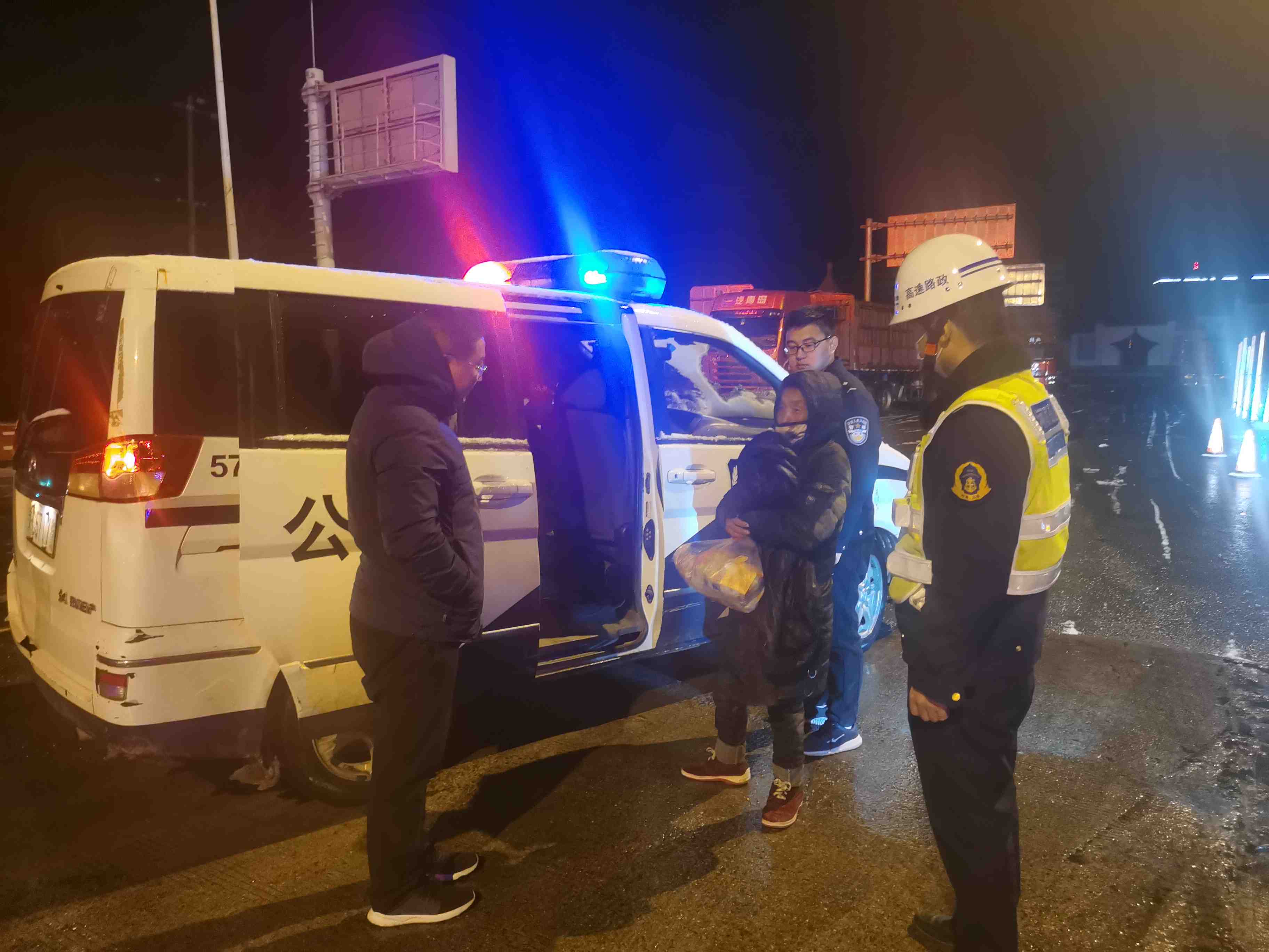 单位:栾川路产大队 发布时间:2021-02-252月24日22时,洛栾高速普降大雪,栾川路产管理大队监控室值班员在例行电子巡查过程中,发现洛栾高速山峡隧道一名老人在隧道内徘徊,立即通知路面巡查人员赶赴现场帮助。由于老人精神状态不佳,无法说出具体的家庭住址,遂立即联系110指挥中心,将老人扶上巡逻车带往旧县收费站临时安置,并等待派出所民警将老人接回后进一步联系家属。