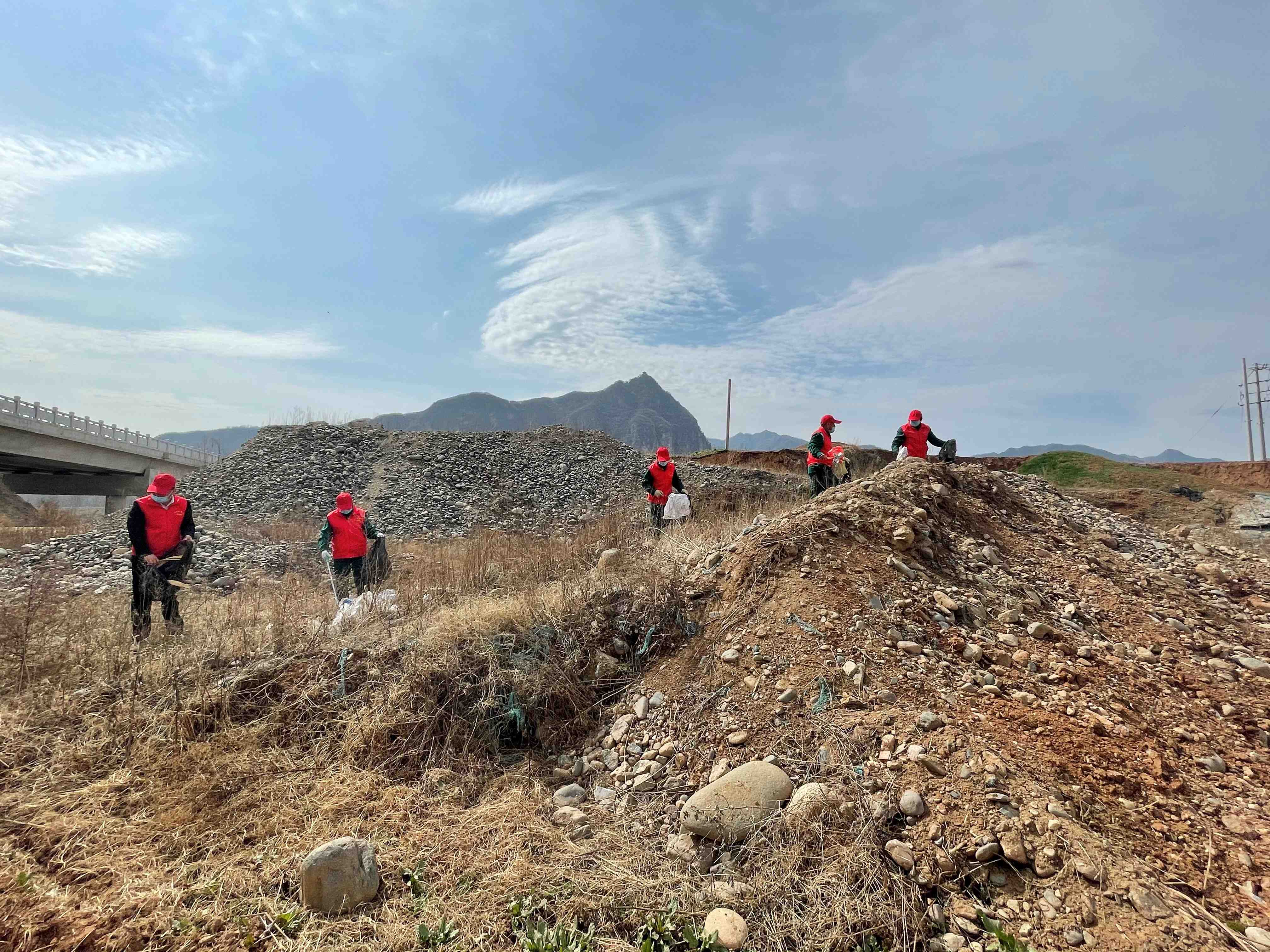 志愿者一行穿着标志性的红色马甲,认真对河边的白色垃圾进行清理捡拾,一个个忙碌的“红色身影”成为了一道靓丽的风景线。