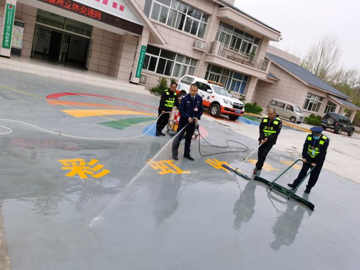 为进一步美化站区环境,优化服务品质,促进收费站焕发新活力。4月12日,洛宁西收费站以开展服务形象提升月活动为契机,组织在岗职工开展卫生死角专项治理行动,对篮球场、院区地面进行清扫、冲刷,使站区形象明显提升。可谓是适逢形象提升月,洛宁西人多忙碌,你拖地来我冲水,共建最美彩虹站。
