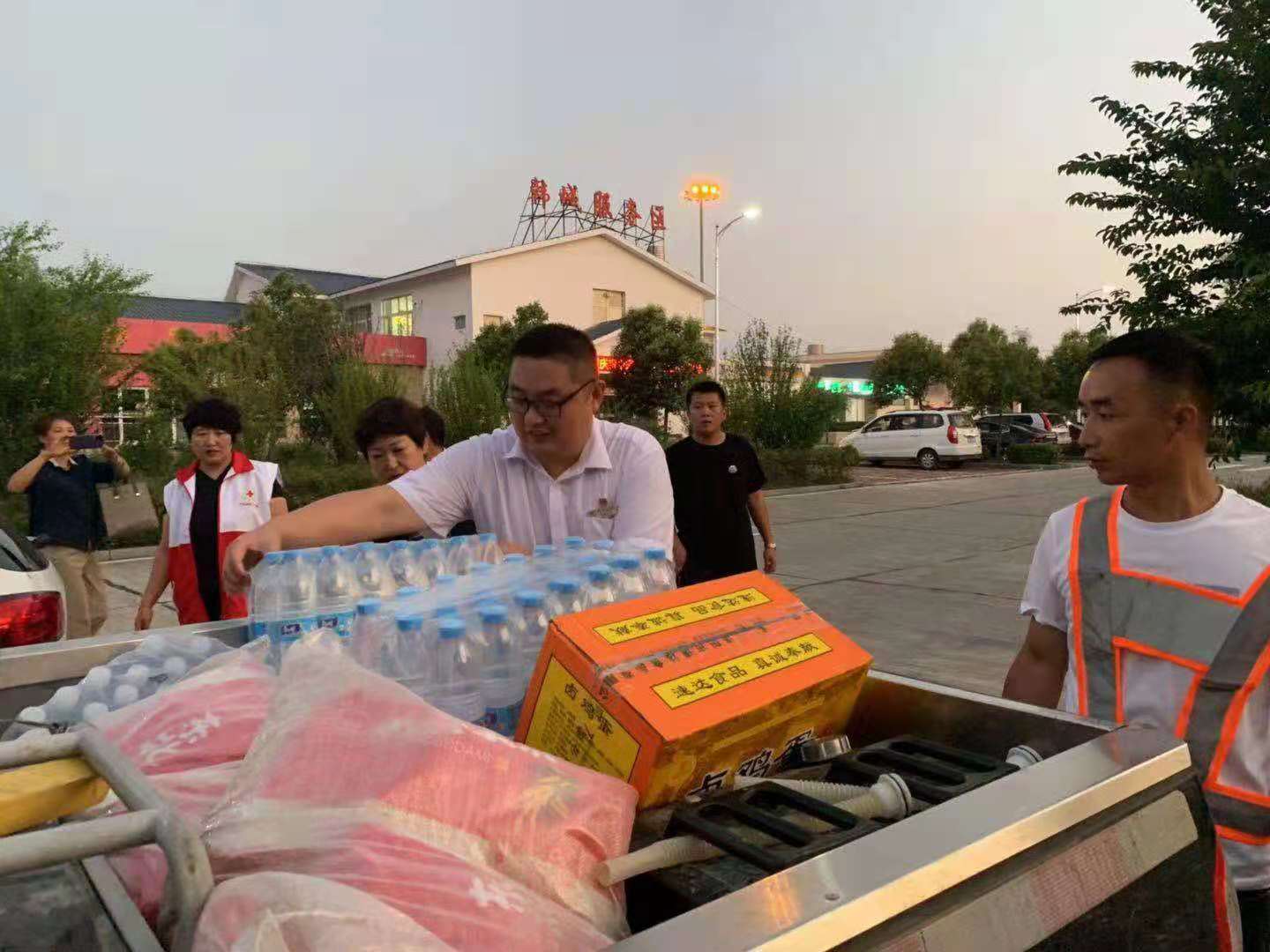 7月24日,白云山服务区值班经理带领在岗人员为抢险救灾运输车辆的人员准备免费物资,同时在便捷区域专门设置抢险救灾车辆停车位,服务区超市总经理张东亚个人主动捐赠十箱方便面和十箱矿泉水交由救灾车辆带去灾区,张经理表示:“物品虽然不多,但是是心系灾区群众的一点心意,希望能为灾区尽自己的绵薄之力,与灾区人民携手同心、共同奋战,重建美好家园。”