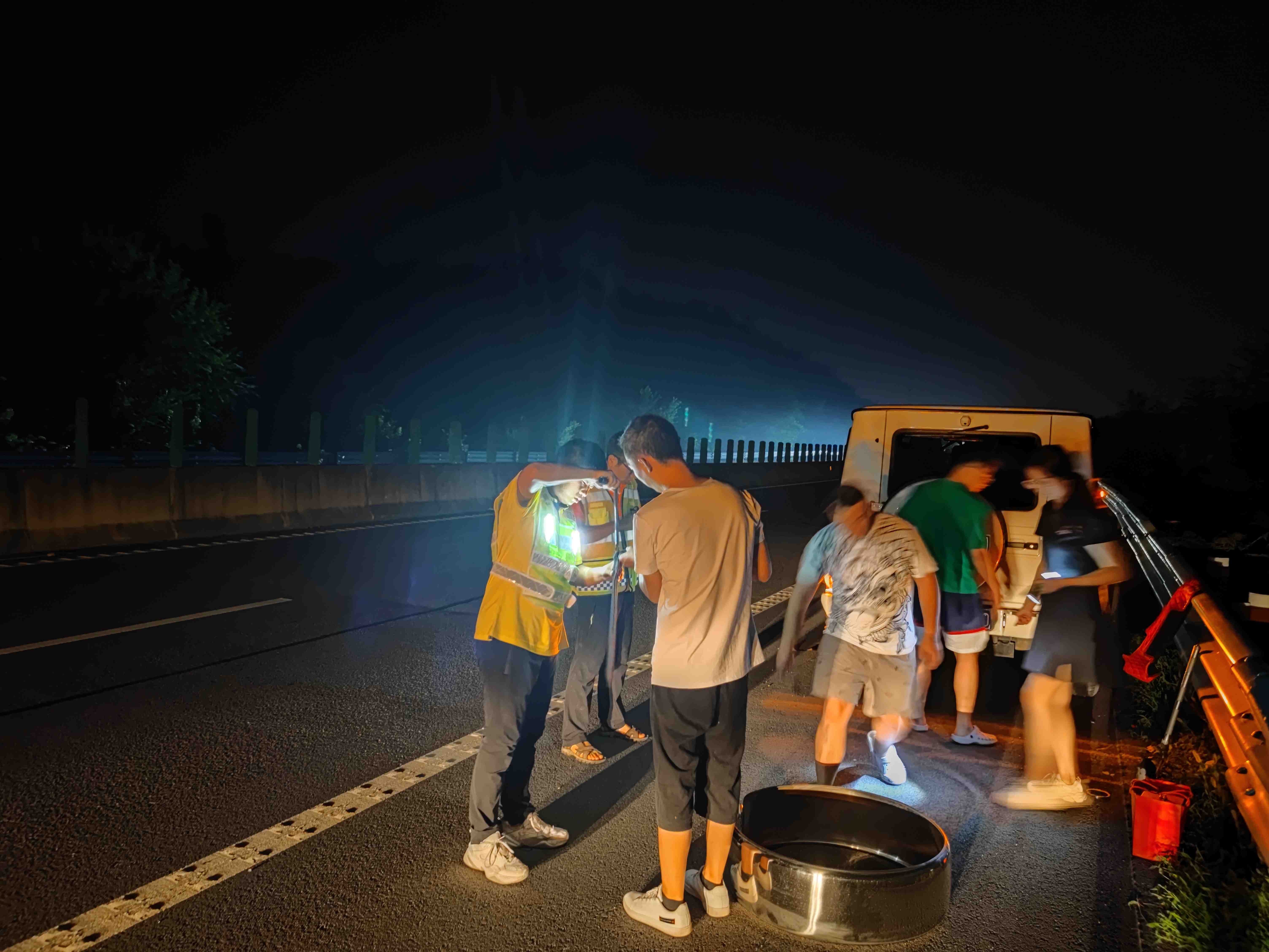 7月24日晚9时20分左右,周山养护管理所夜间巡查时发现洛卢高速下行21公里处一辆轿车停在应急车道,周围有人员走动,极不安全。巡查人员立即设置安全区上前询问情况,发现该车爆胎,司机未携带换胎工具,正束手无策。巡查人员立即取出随车携带的便民工具,帮忙更换轮胎,仅用时十分钟就完成换胎更换,帮助司乘人员解了燃眉之急。