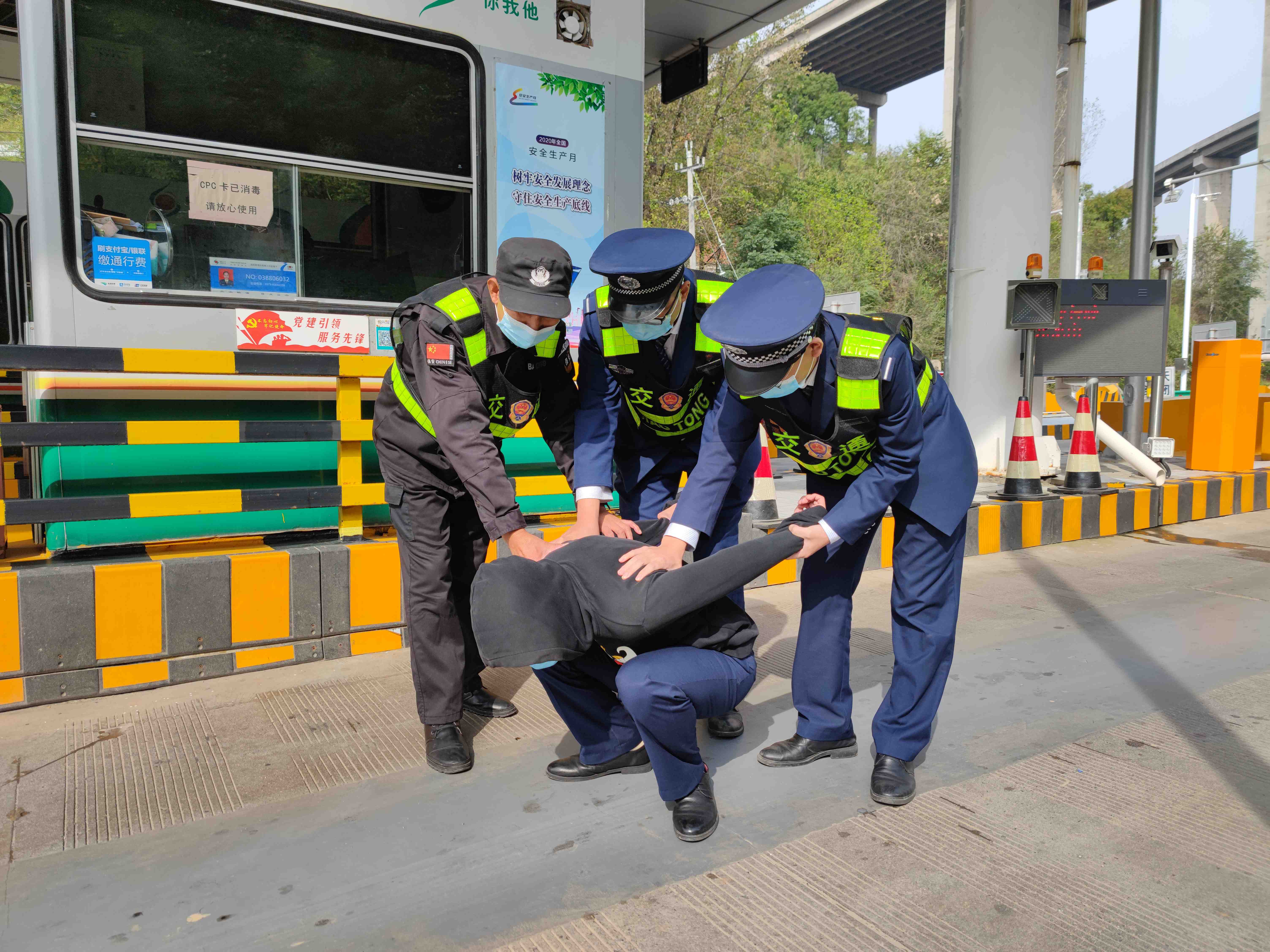 演练模拟歹徒手持凶器试图闯入收费车道,对收费人员的人身安全和票、款、卡造成严重威胁。收费人员发现后,立即紧闭门窗,在保障自身安全的同时通知监控人员,保安与外勤人员手持钢叉、盾等防暴工具,迅速制服了歹徒并夺下凶器,在场职工无人受伤。整个演练过程都在严肃、紧张、有序的氛围中进行,达到预期演练目的。
