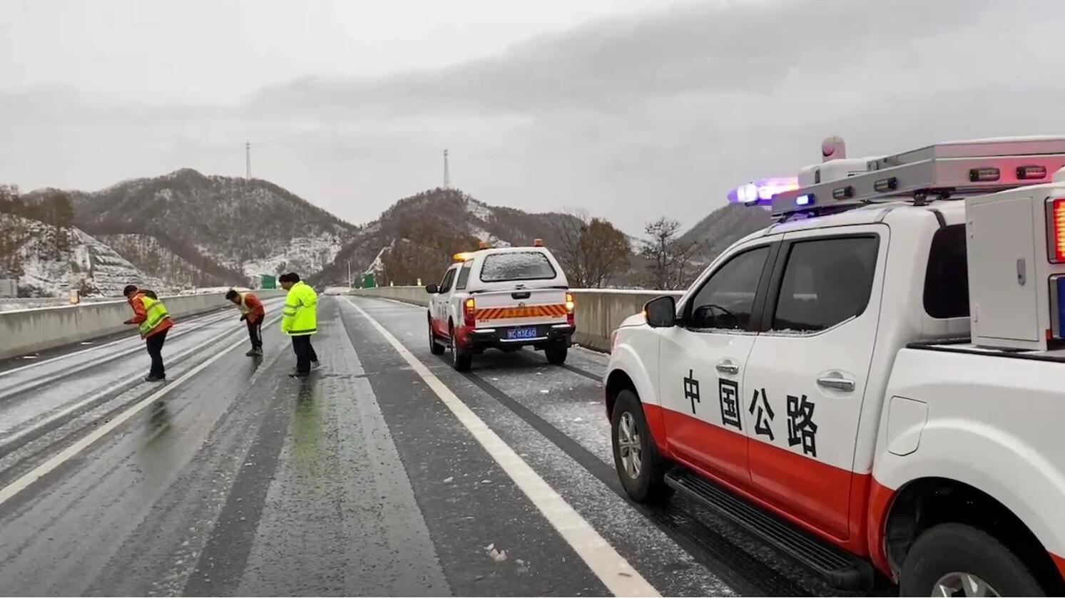 单位:龙峪湾路产大队 发布时间:2021-11-0811月6日晚,受强冷空气影响,S88郑西高速尧栾段迎来了“初雪”。龙峪湾路产管理大队在风雪中坚守岗位,24小时不间断巡查,期间发现桥面有积雪、结冰现象,影响行车安全,立即启动大队冬季除雪保通方案,第一时间联系养护部门组织作业机械和人员对积雪路段进行撒盐保通作业。重点对桥面、隧道进出口、爬坡等积雪结冰严重路段采取机械与人工相结合的除雪方式,及时撒布融雪剂,全力保障道路畅通,保障司乘人员行车安全。