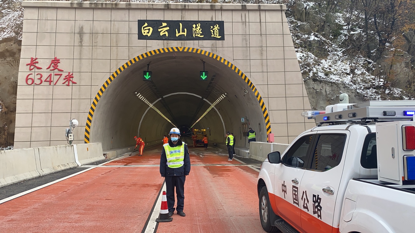 11月6日晚,受强冷空气影响,S88郑西高速尧栾段迎来了“初雪”。龙峪湾路产管理大队在风雪中坚守岗位,24小时不间断巡查,期间发现桥面有积雪、结冰现象,影响行车安全,立即启动大队冬季除雪保通方案,第一时间联系养护部门组织作业机械和人员对积雪路段进行撒盐保通作业。重点对桥面、隧道进出口、爬坡等积雪结冰严重路段采取机械与人工相结合的除雪方式,及时撒布融雪剂,全力保障道路畅通,保障司乘人员行车安全。