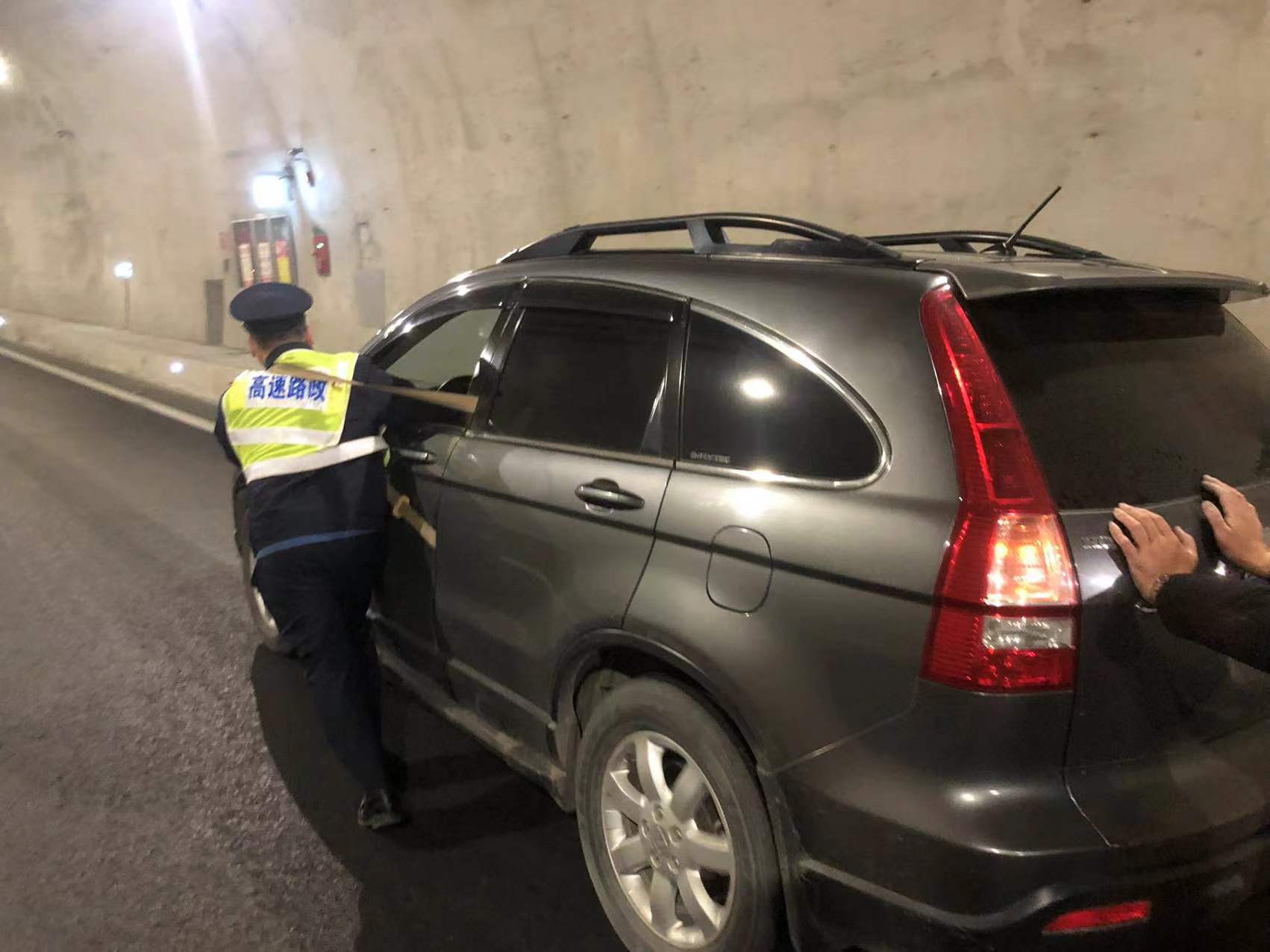 单位:尧山西路产大队 发布时间:2021-11-0911月8日11时10分,郑西高速尧栾段207公里处木札岭隧道内,一辆灰色小型客车停滞在行车道上,监控中心发现后立刻电话通知巡查人员前往查看。