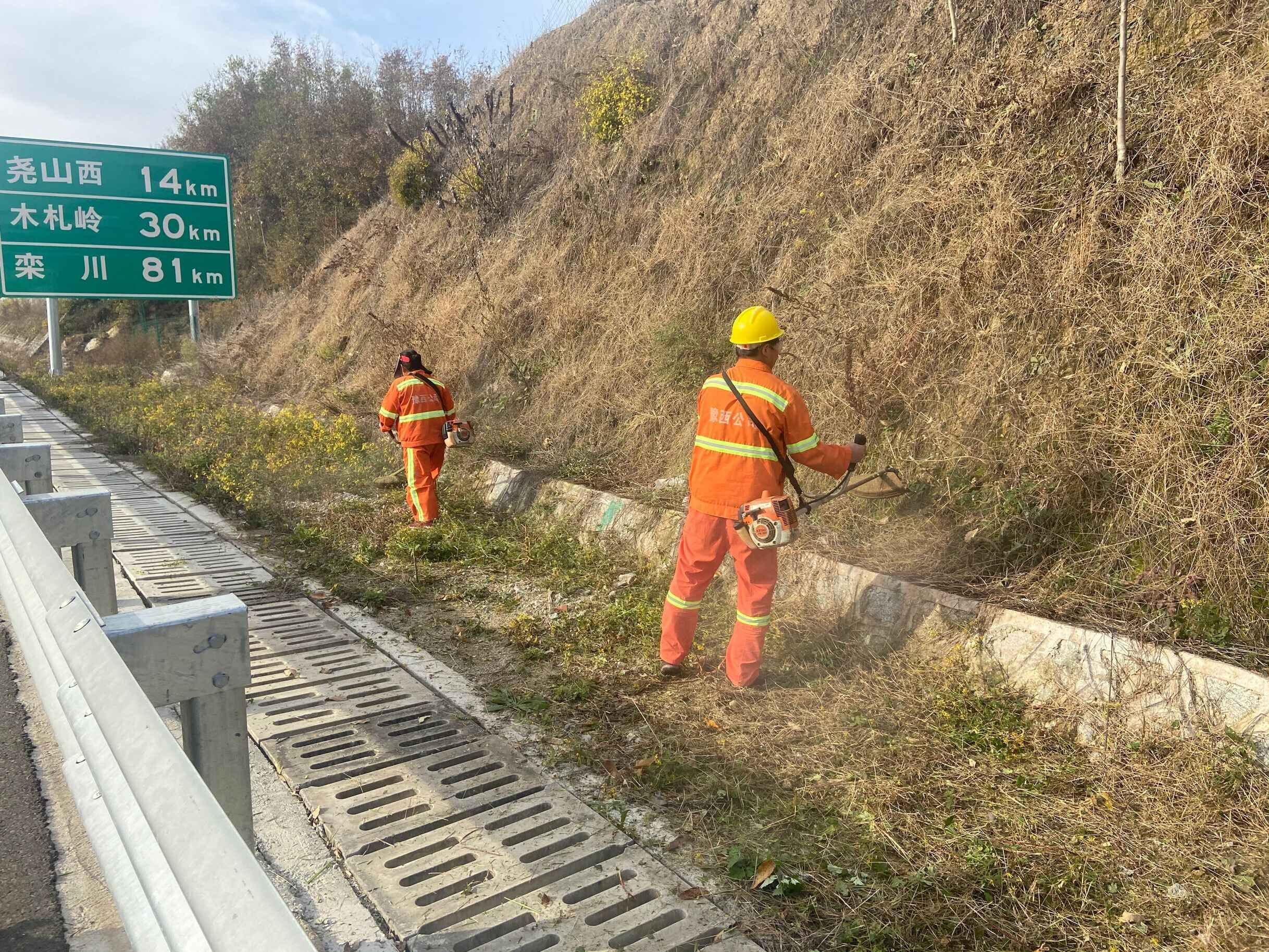 为做好冬季道路养护工作,尧山西养护管理所针对冬季气候特点精心制定措施方案,认真组织实施道路养护。一是查看路上苗木生长情况及土壤墒情,根据树木生长具体情况,及时进行浇水、施肥,做好绿化树木冬季养护;二是对边坡及碎落台枯枝树叶及时进行清理,做好冬季防火措施,三是对交安设施进行全面排查,并及时完善损坏设施,切实保障道路运营安全。