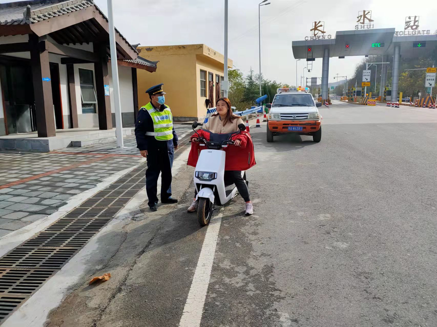 河南省交通运输发展集团洛阳分公司洛宁路产管理大队队员在巡查发现后,立即对该妇女进行劝离,并告知其在高速公路骑车、走路的危害性。随后,路产管理队员将该妇女及电动车带离高速公路。对于路产管理队员的帮助和及时提醒,这名妇女非常感谢,并表示以后不会再做出这种危险的行为。