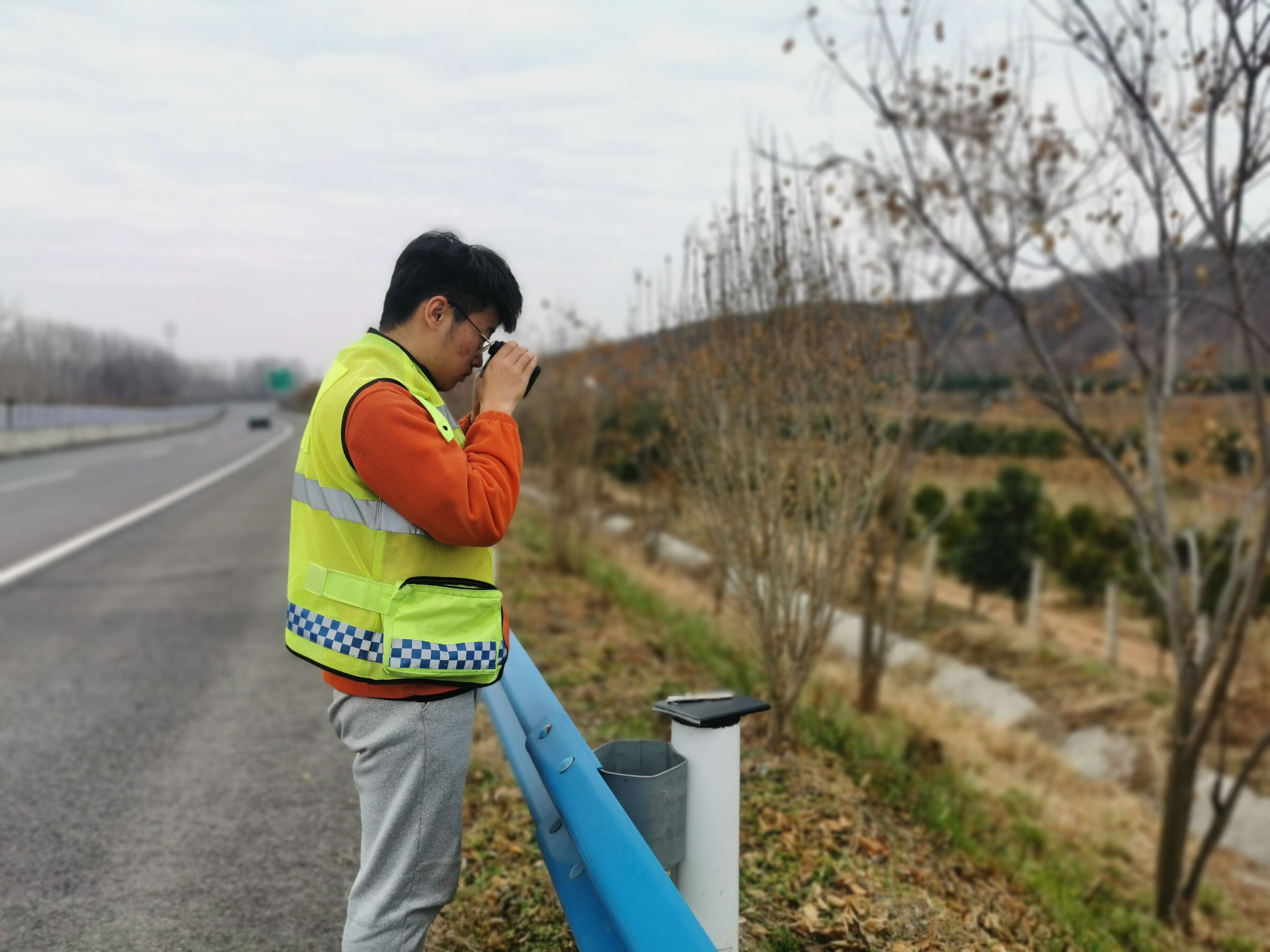 洛宁西养护管理所,为准备2022年横向排水管修复专项的立项工作,现场使用测距望远镜,调查边坡坡度、坡率等数据。