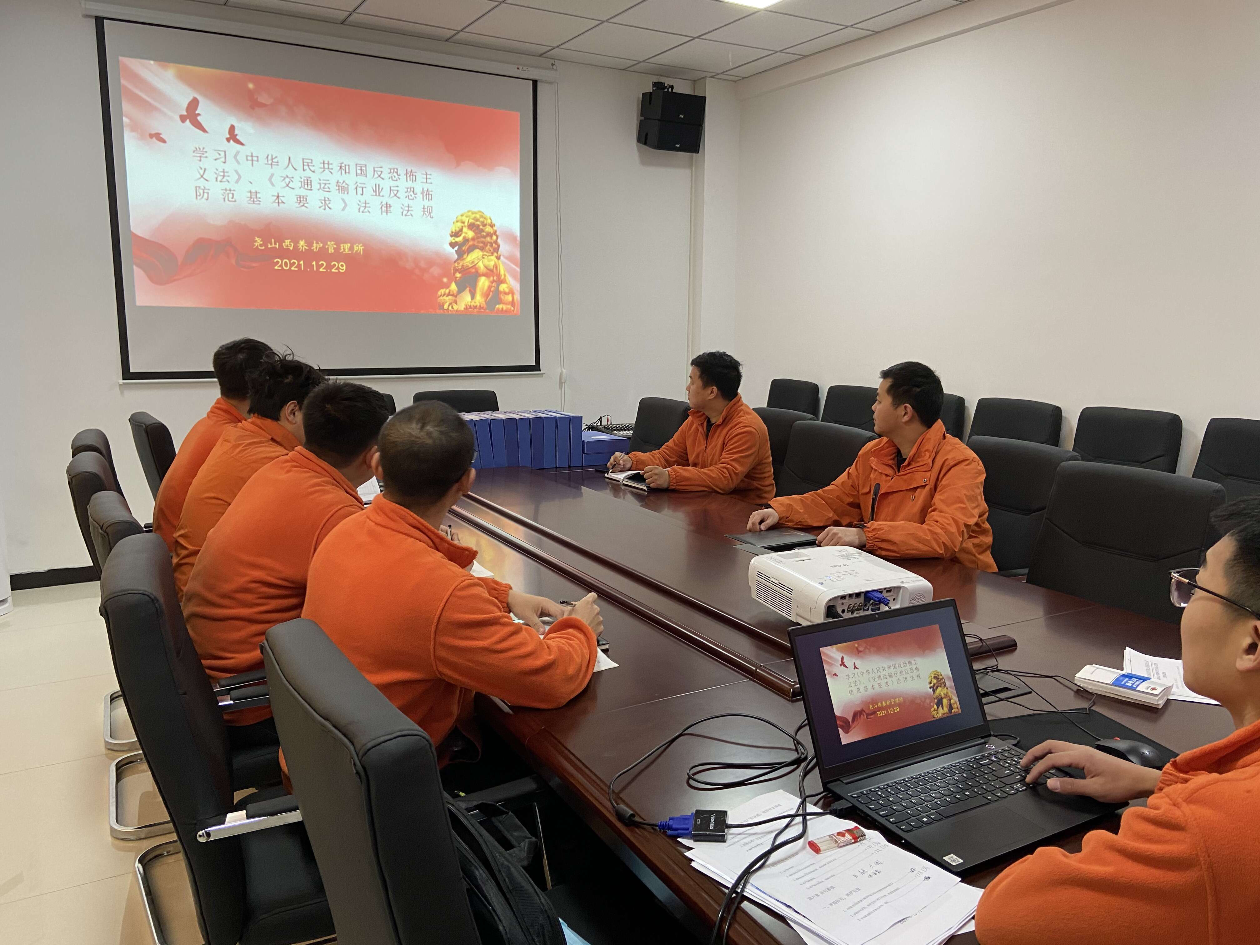 单位:尧山西养护所 发布时间:2021-12-3012月29日,尧山西养护管理所为进一步加强反恐怖防范工作,维持良好的养护秩序,养护所组织职工开展反恐怖防暴活动,活动围绕以下三点进行:一是组织召开反恐防暴会议,根据上级来文精神,组织职工进行反恐防暴专题学习,通过观看宣传教育片,进一步提高大家安全意识;二是组织开展反恐防暴演练,结合工作实际,利用反恐防暴器具现场与恐怖分子展开模拟演练,整个过程中,大家有条不紊、各尽其职;三是利用微信、qq等媒介,转载发送反恐防暴安全常识进行宣传,号召全体职工积极学习相关法律法规、宣传片,进一步营造良好的反恐防范工作氛围。