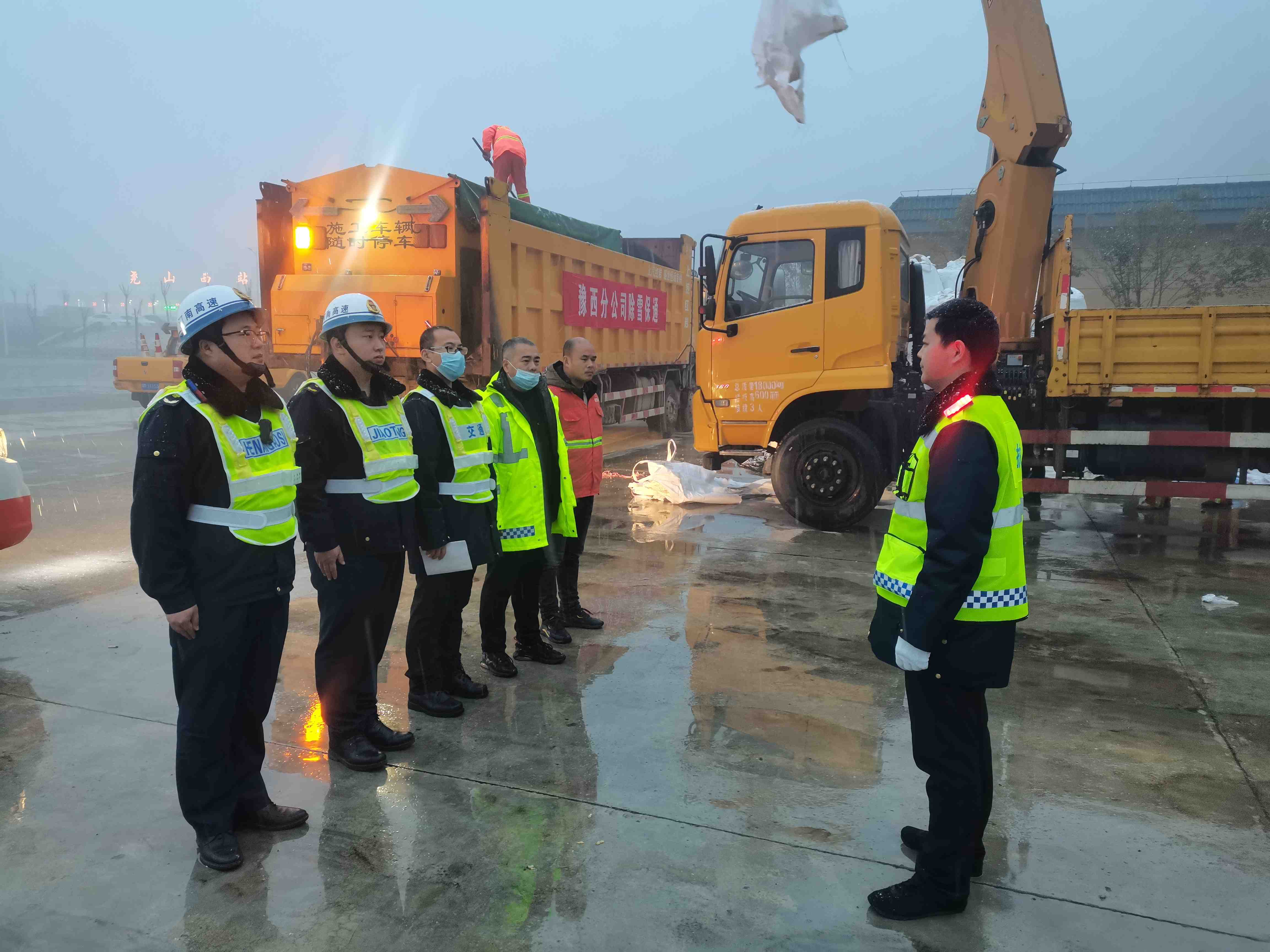 2022年1月4日,交发集团洛阳分公司尧山西路产管理大队所管辖路段迎来了新年第一场雪,受低温降雪影响,为确保车辆通行安全,傍晚17时尧山西收费站实施交通管制措施。尧山西路产管理大队以雪为令,联合养护部门迅速开展除雪保通工作,为减少路面冰雪对交通造成的不利因素,针对辖区全段桥涵结构物、互通区匝道等重点路段增派人员,采取机械作业与人工结合抛撒防滑砂料、融雪剂进行清理,因为提前处置,融雪剂一落地,雪就化了。同时,还加强路面动态管控力度,加大巡逻密度、增加巡查频次;观测雪情变化,查勘桥梁有无结冰、积雪现象,保证路况信息互联互通,及时向路警联合指挥中心汇报雪情、融雪实时信息,多项措施做好除雪融冰工作,全力以赴保障高速公路安全、快捷、畅通。