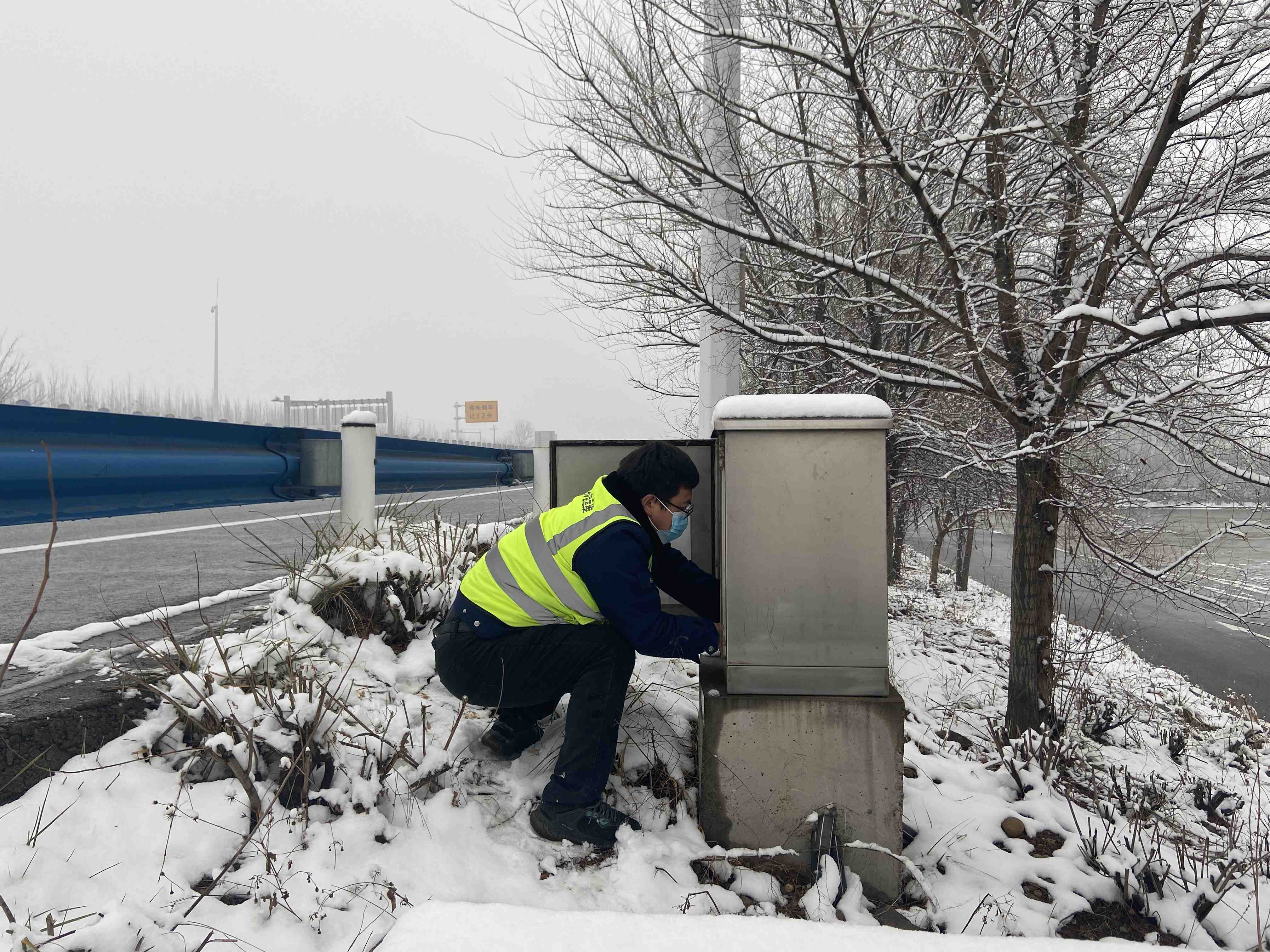 近日,辖区突降大雪,为保障机电设备安全稳定运行,洛宁运维大队组织维护员对辖区机电设备进行徒步巡查,密切关注变压器、配电箱等设备的运行情况和积雪覆冰情况,确保辖区设备安全运行。