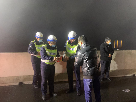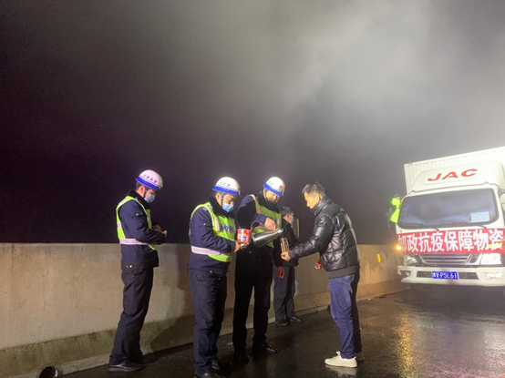 单位:尧山西路产管理大队 发布时间:2022-01-212021年1月20日,因寒潮提前到来,郑栾高速尧栾段大范围降雨,道路结冰实行全线交通管制。河南省交通运输发展集团洛阳分公司尧山西路产管理大队在巡查中发现运送抗疫保障物资的车辆因发生事故无法行驶,在联系救援的同时了解到司机着急运送物资一天没有吃饭,路产人员立即将携带的保通食品和热水送到司机手中,为其提供便民服务,让司机堵车不堵心,天冷身冷心不冷。一句句热情的话语,一声声贴心的问候,得到了现场司乘人员的一致好评。