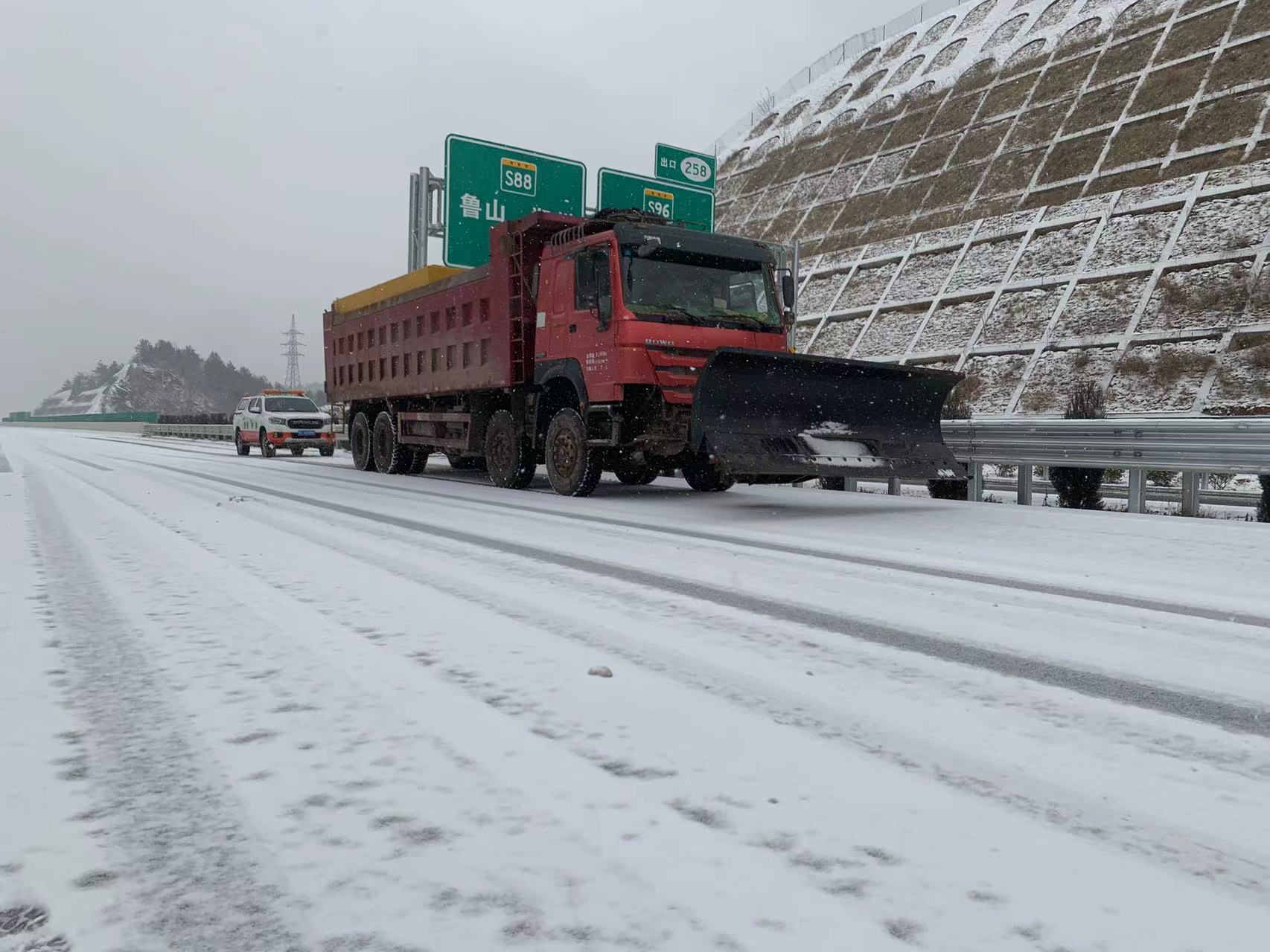 单位:西峡养护所 发布时间:2022-01-212022年1月21日,渑淅高速栾双段全线小雪,西峡养护管理所密切关注天气变化与道路动态。20日23点左右开始下雪,凌晨0:00管理所巡查时老界岭以南路面桥面地温均在1℃左右,路面湿润未有积雪,老界岭以北路面桥面地温均在-1℃左右,路面开始积雪。早上7:00养护所巡查时老界岭以北积雪厚度已达1.5公分,上午9:22分接监控中心指令,开始对老界岭隧道以北机老君洞收费站以北部分桥面和隧道口采取机械撒布融雪剂作业,两辆载满融雪剂的撒布车即刻出动,管理所养护车辆紧随其后进行保通作业,为辖区道路安全提供有力保障。