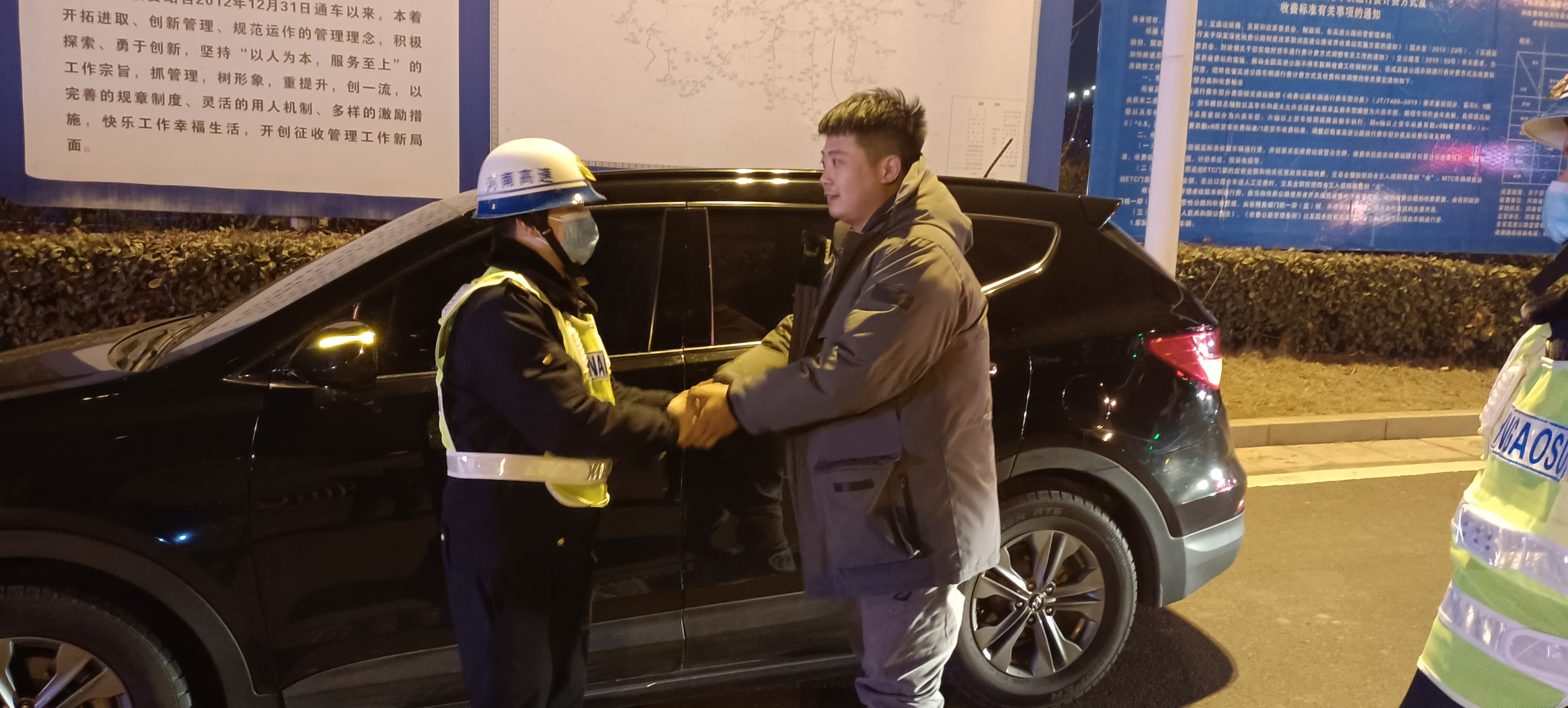 单位:嵩县路产管理大队 发布时间:2022-02-072022年2月5日18时30分,洛栾高速嵩县收费站栾川往洛阳方向下匝道处,一辆鲁V牌的黑色小轿车正停在紧急停车带上。交发集团洛阳分公司嵩县路产管理大队接到监控中心电话后立即前往处理。