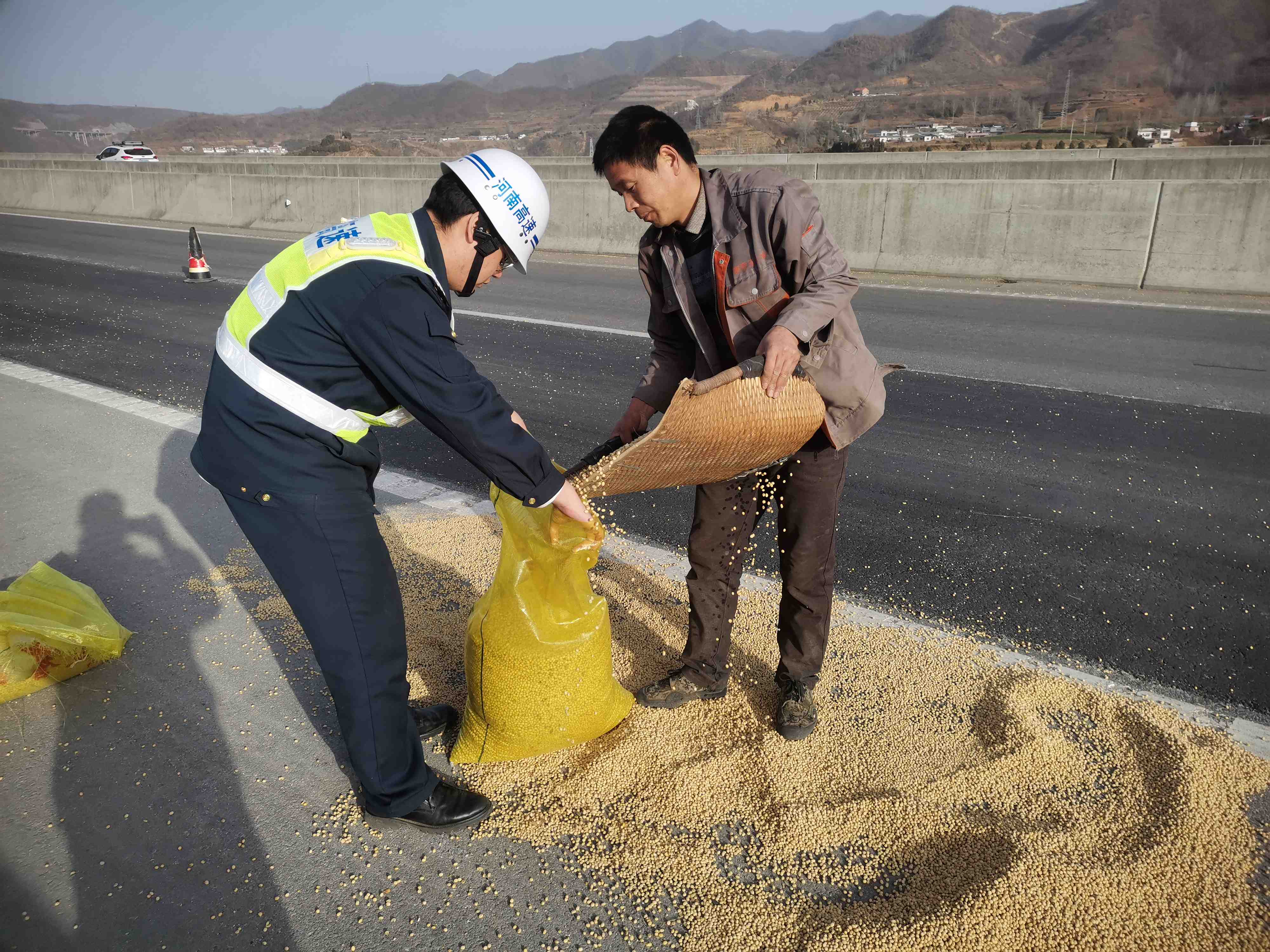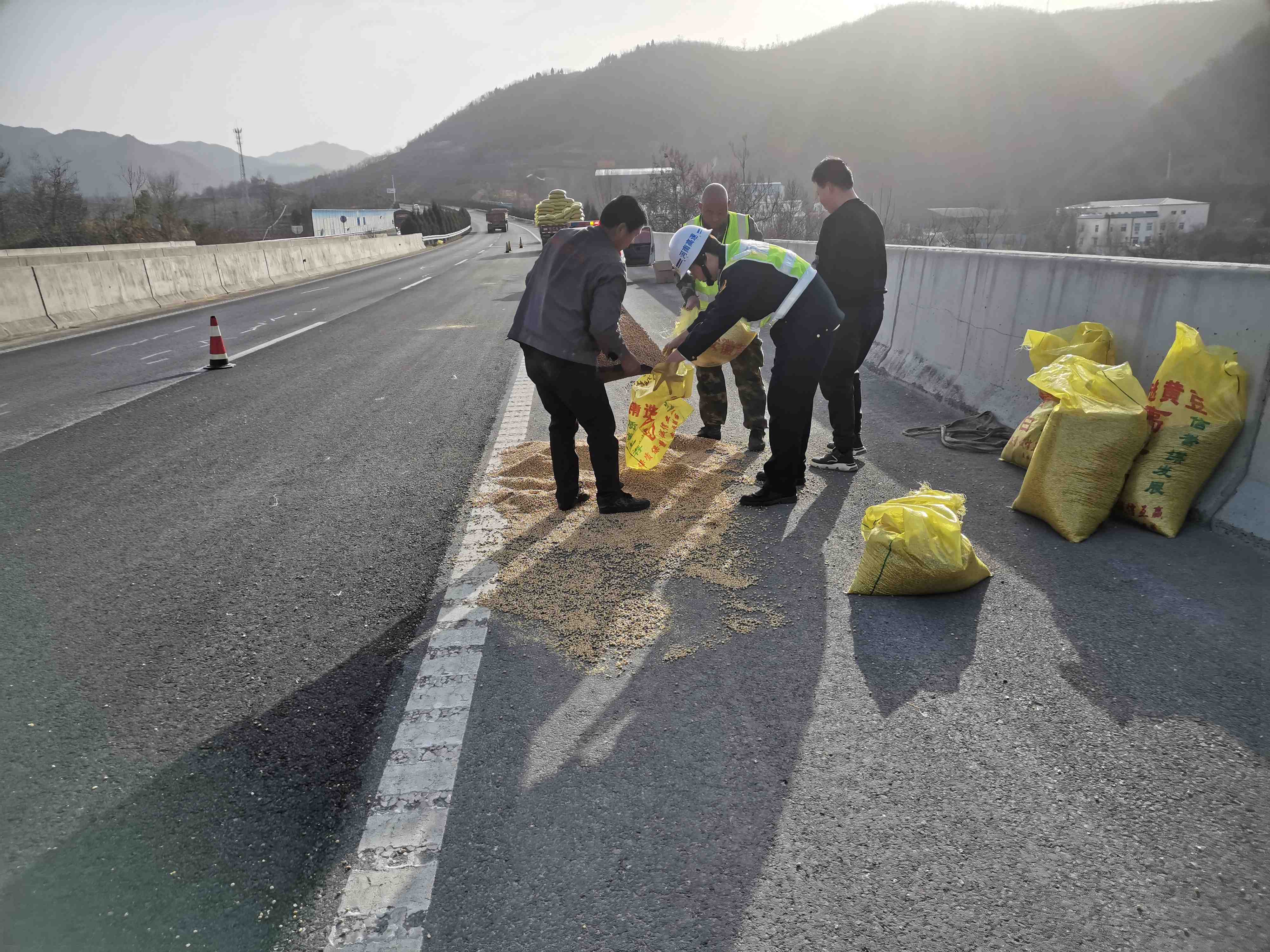 黄豆洒落高速,路产变身“搬运工”