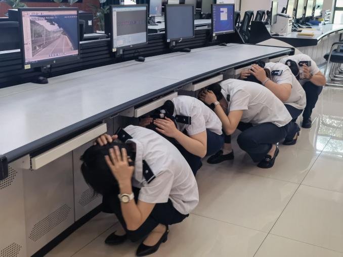 单位:监控中心 发布时间:2022-05-18为进一步增强监控中心职工对地震等突发事件的防灾减灾意识,加强灾害应急准备,5月17日,监控中心开展防震减灾地震演练活动。演练开始前,安全员通过观看视频等形式,向参加活动的职工介绍了遇到自然灾害自我救助防护和救助避险的相关常识。随着吹响第一声警报,防震逃生演练正式开始,各职工迅速抱紧头部寻找桌下或墙角进行紧急避险。第二声警报后,职工模拟第一波地震已过,防余震紧急疏散演练环节,参训职工迅速双手抱头、降低重心沿着应急疏散路线快速有序撤离到户外安全区域。经核查人数无误,演练顺利结束。