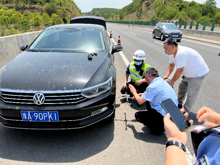 单位:宜阳路产大队 发布时间:2022-06-072022年6月7日13时36分,宜阳路产管理大队一中队巡查至K10+100m(下行)发现车牌号为豫A90PK1的小型客车因爆胎无法行驶,而车后方未设置任何警示标志,存在严重安全隐患。见此情况,巡查人员立即设置安全区并利用随车工具同高速交警一起帮助司机更换备胎。