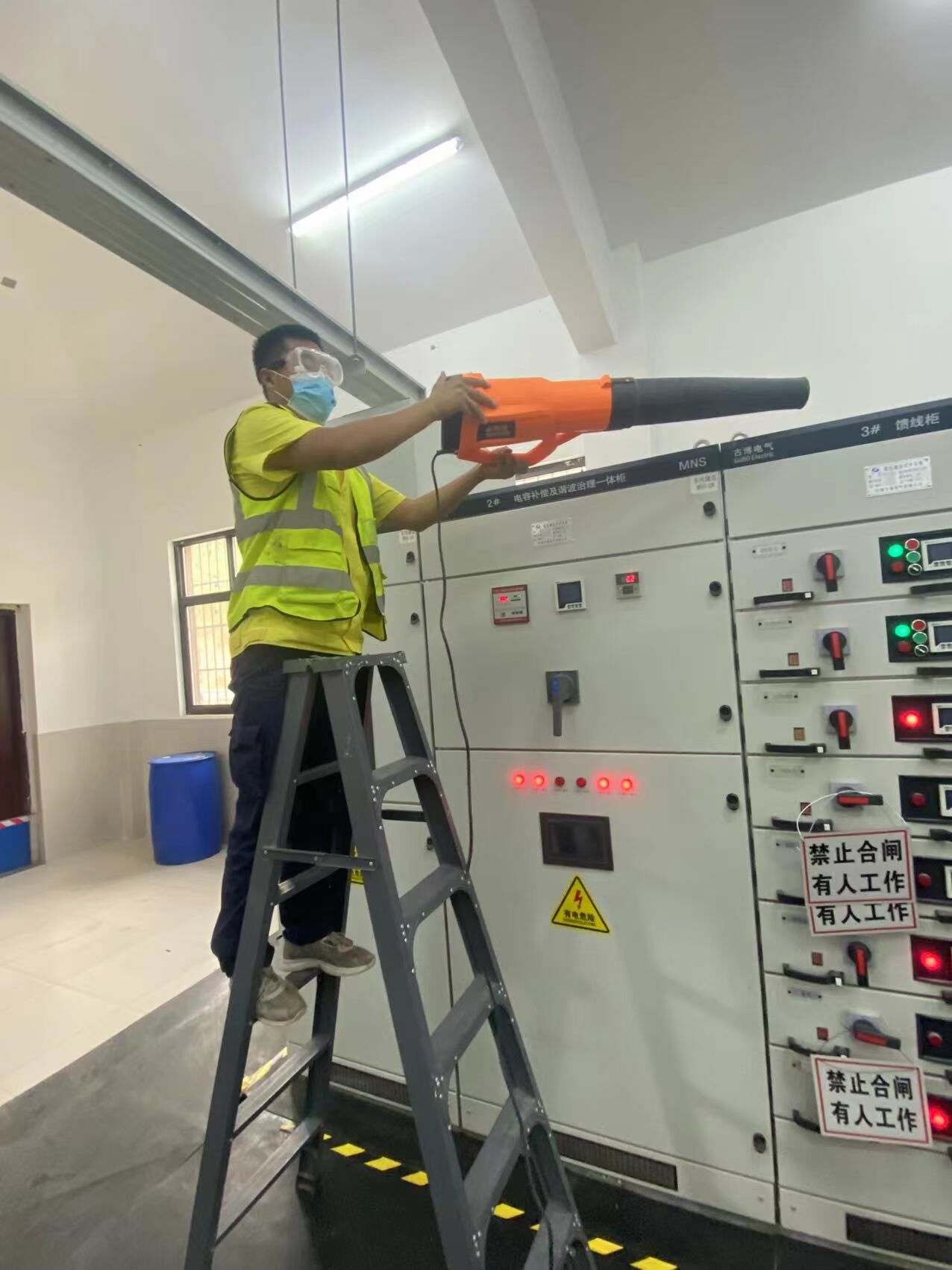 面对近期高温天气,为确保设备安全度夏,尧山西机电运维大队加大设备巡检力度,对各配电室、设备机房、UPS室设备进行“地毯式”隐患排查,及时消除设备缺陷,为设备长周期稳定运行提供保障。图为运维队员对低压配电柜进行吹扫作业。