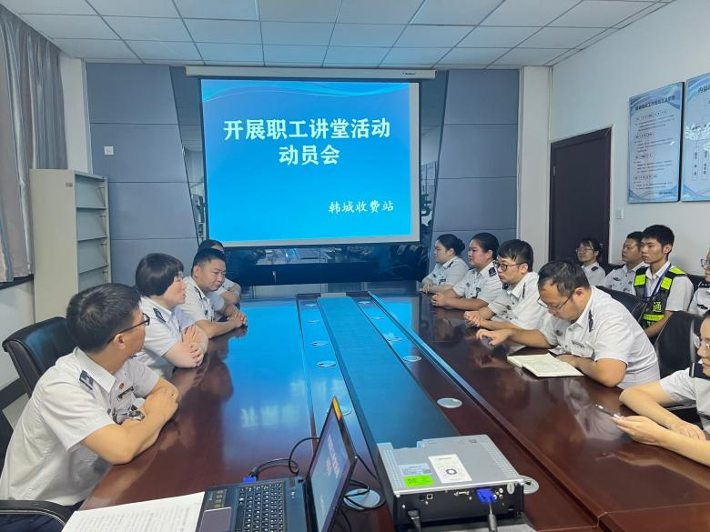 单位:韩城收费站 发布时间:2022-08-248月23日,韩城收费站召开“职工讲堂”活动动员会,由站长陈琪主持会议,全站员工参加了会议。