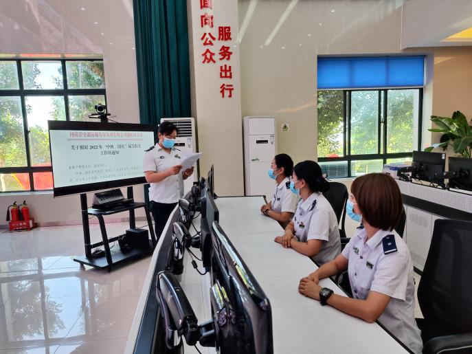 单位:监控中心 发布时间:2022-09-069月6日,监控中心开展节前工作部署会议,确保双节欢乐祥和的氛围。当前正值中秋节、国庆节、二十大召开前夕,负责人要求一是在岗人员坚持疫情防控思想不懈怠,把各种防护措施落实到位,加强消毒消杀等防疫工作;二是要增强政治敏感性,切实做好二十大召开前保安全、保稳定工作,发现不稳定因素第一时间处理;三是要贯彻落实分公司应急预案内容,做好突发事件应急处置工作;四是严格执行24小时值班制度,加强节假日期间道路电子视频巡查力度,时刻关注所辖路段通行情况,及时与各部门信息互通、协同配合,做好信息的上传下达工作;五是要规范做好节前用电消防安全等检查工作,确保监控中心安全生产工作保持稳定。