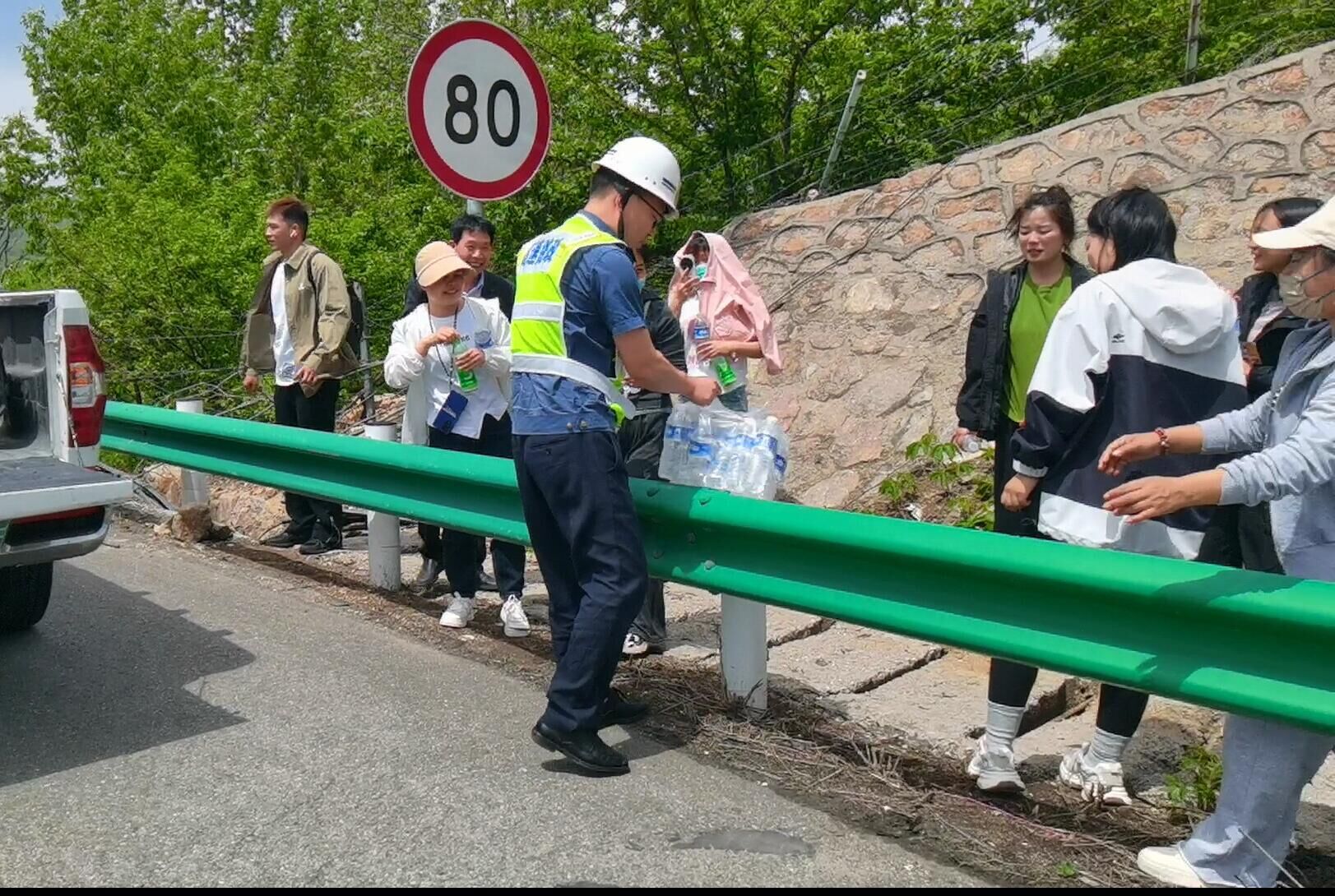 单位:路产管理部 发布时间:2024-04-252024年4月23日11时,栾川路产管理大队巡查至洛栾高速123公里处时,发现一辆大客车停靠在应急车道上。路产人员立即停车查看,迅速设置安全区提醒过往车辆减速慢行,并疏导乘客至护栏板外安全地带等候。据了解,该车行驶途中突然爆胎,车上共有20名司乘,等待时路产人员为大家提供瓶装饮用水,并安抚乘客情绪。12时05分,爆胎客车备胎更换完成后,现场路产人员护送乘客安全上车,被困司乘人员对路产人员的热心服务表示感谢。