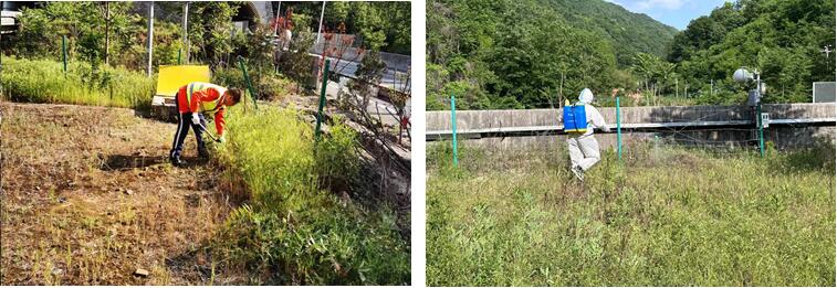 单位:机电管理部 发布时间:2024-05-08春季雨水充沛,树木杂草生长旺盛。为防范树木杂草给设备运行带来安全隐患,确保供配电设施设备安全稳定运行,机电管理部将“除草清障”行动列为春季巡检工作的重要组成部分,组织机电运维人员对辖区配电房进行安全巡检,集中、有针对性地开展配电房周边藤曼杂草清理工作,为设备安全运行提供了良好的环境,及时消除安全隐患,有效提高供电可靠性,保障设备安全稳定运行。