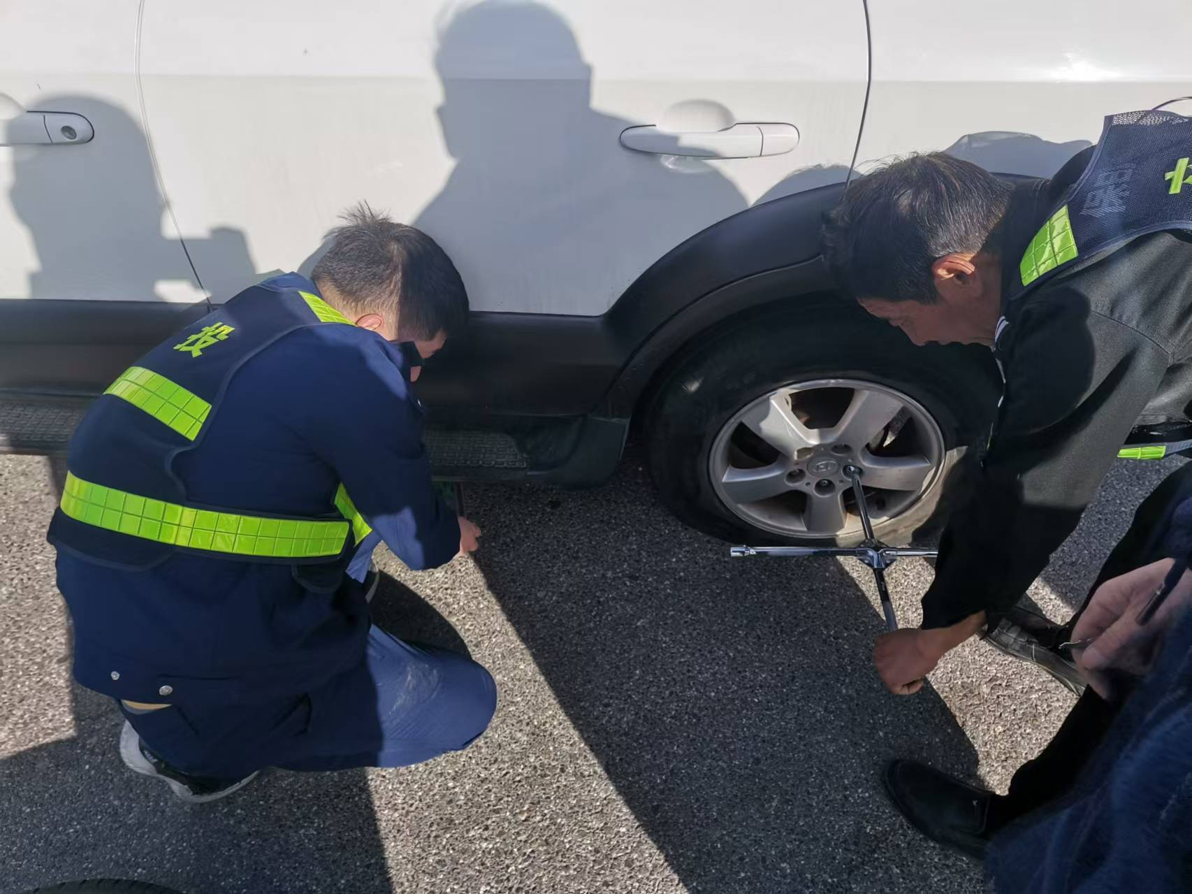 洛宁东收费站:4月2日下午,一辆蓝牌A货在收费站出口处突然停滞不前。收费站工作人员迅速发现异常,立即上前询问司机师傅的情况。经了解,该司机师傅来自焦作,此行是赶来洛宁送货,不料车辆突然爆胎,由于人生地不熟,司机师傅心情十分焦急。了解情况后,工作人员迅速采取行动,拿来反光锥放在车的周围,划出安全区域,为缓解司机师傅的紧张情绪,递上了热水进行安抚,并陪同司机师傅一同更换车胎。司机师傅对收费站的及时帮助连声道谢,他表示在异乡遇到困难时,能够得到收费站工作人员的热心帮助,让他感到十分温暖。