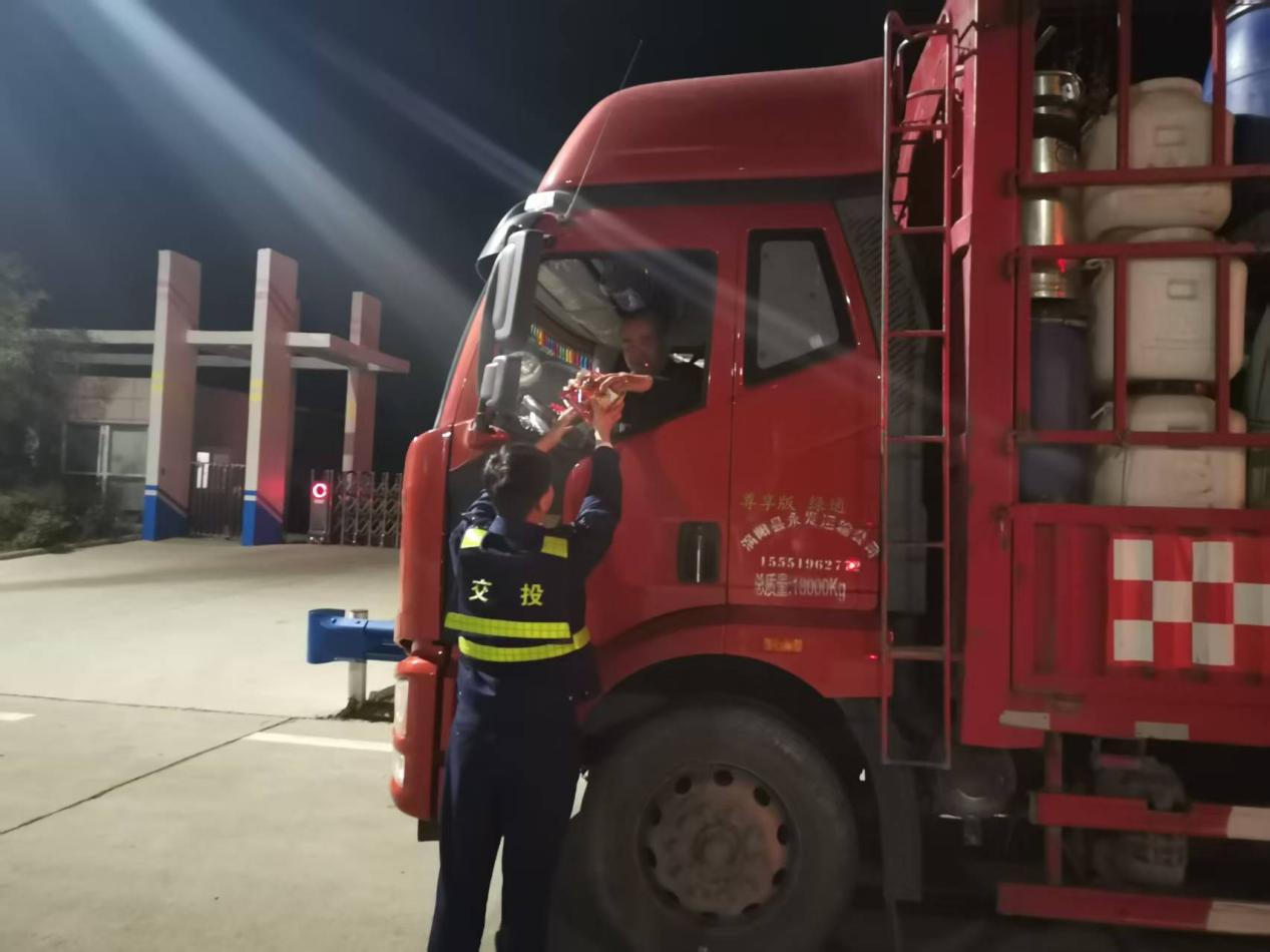 洛宁西收费站:4月18日凌晨,一辆载有蜜蜂的货车驶入收费站的绿色通道验货区,外勤人员注意到司机面露疲惫。经过询问,了解到司机因急于赶路而尚未进食。当时正值深夜,为了帮助司机缓解饥饿,外勤人员迅速为司机提供了方便面、火腿肠等食物。接过食物的司机感激不已,连声道谢。洛宁西收费站坚持用实际行动传递温暖,树立良好的窗口服务形象。