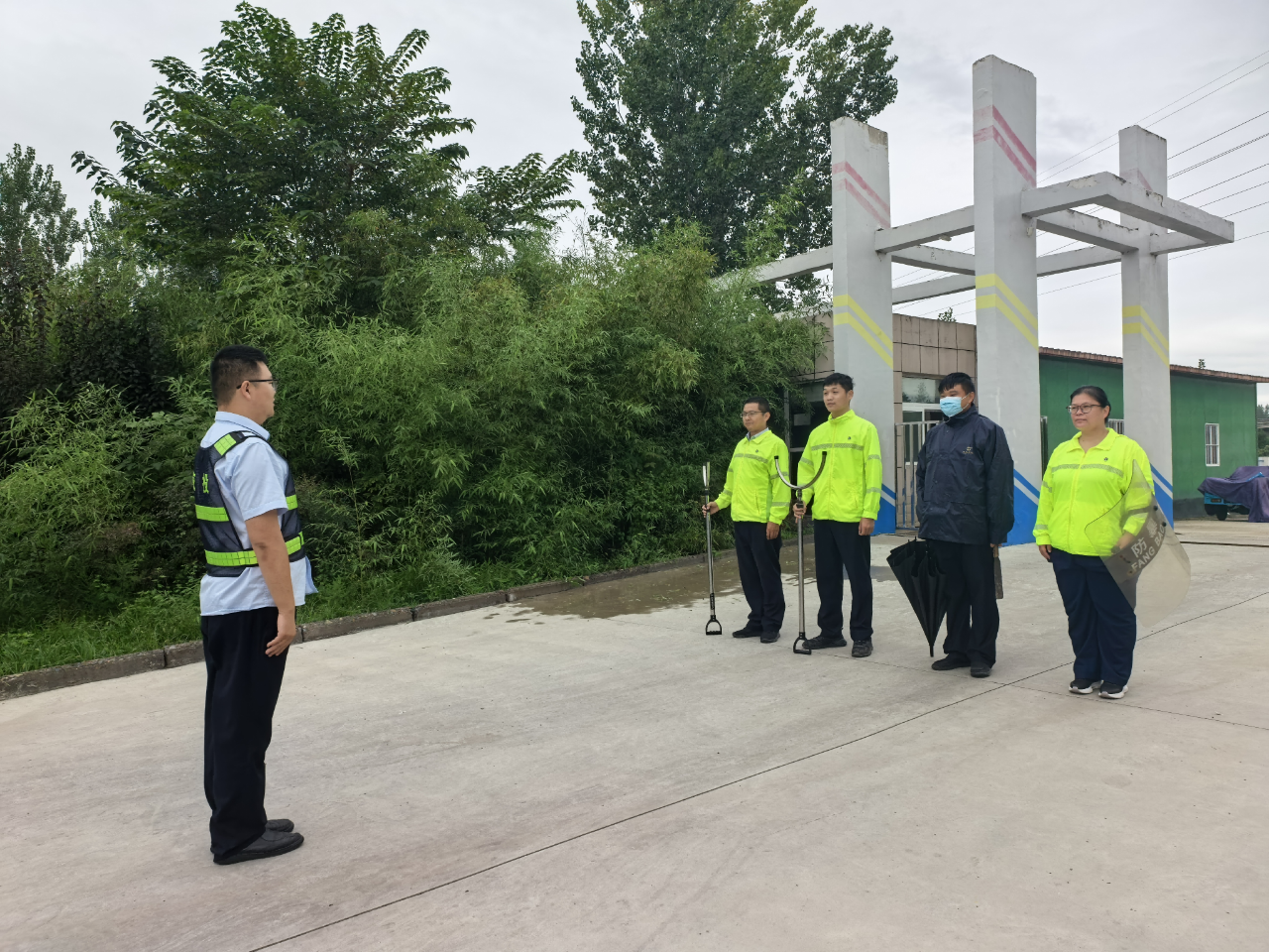 演练以疑似可疑人员闯入收费广场为模拟场景,重点检验应急响应流程与现场处置能力。演练启动后,收费外勤员在日常巡查中发现可疑人员,立即通过对讲机第一时间向监控室报告,收费员迅速关闭收费窗口,将票款规范存入保险柜;在站应急人员接报后,迅速携带防爆盾牌、钢叉等防暴装备赶赴现场,严格按照应急预案分工,对可疑人员实施有效拦截、警示与控制,全过程紧张有序。